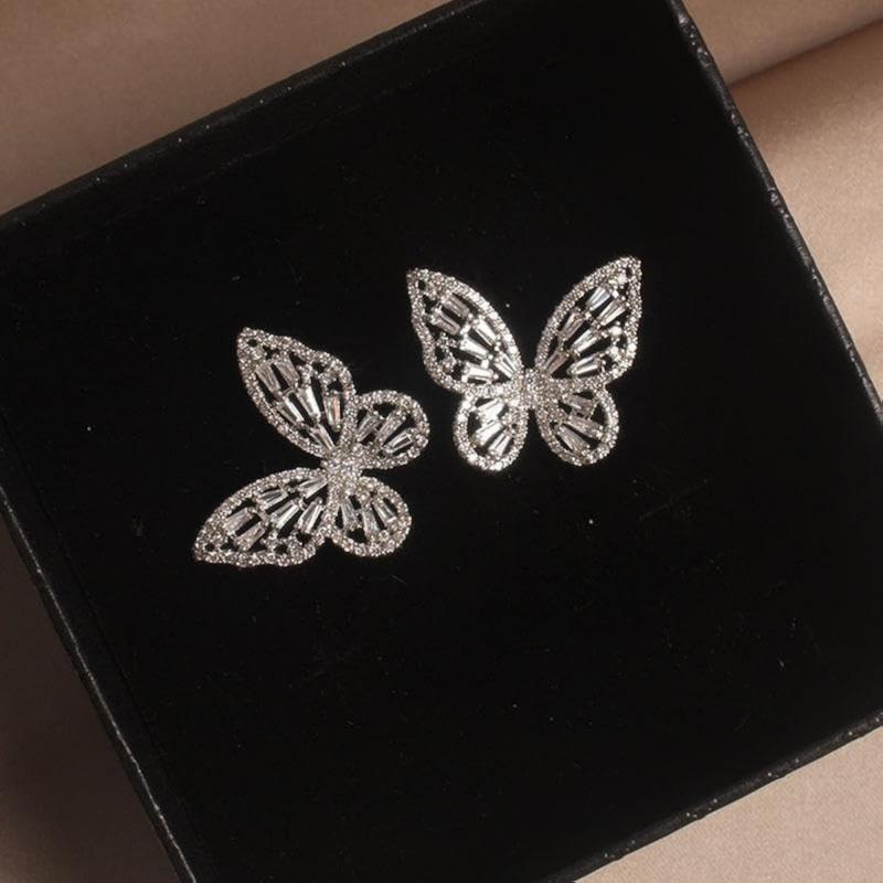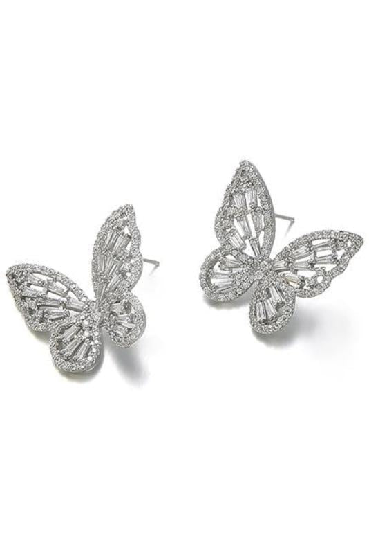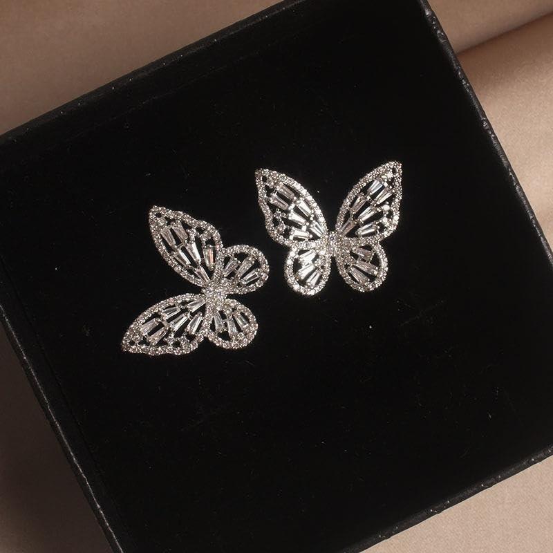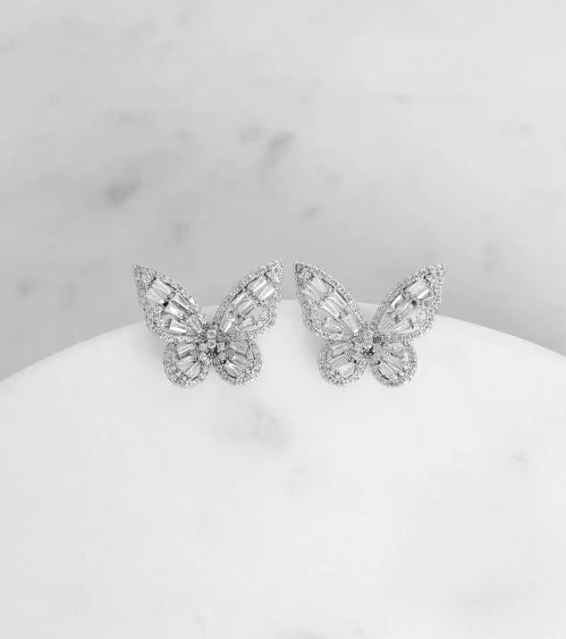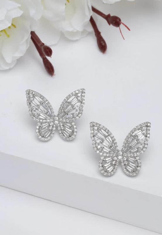 Get the celebrity-inspired look with these stylish silver plated earrings featuring zircon and American diamond accents. The cute butterfly design adds charm to your outfit.