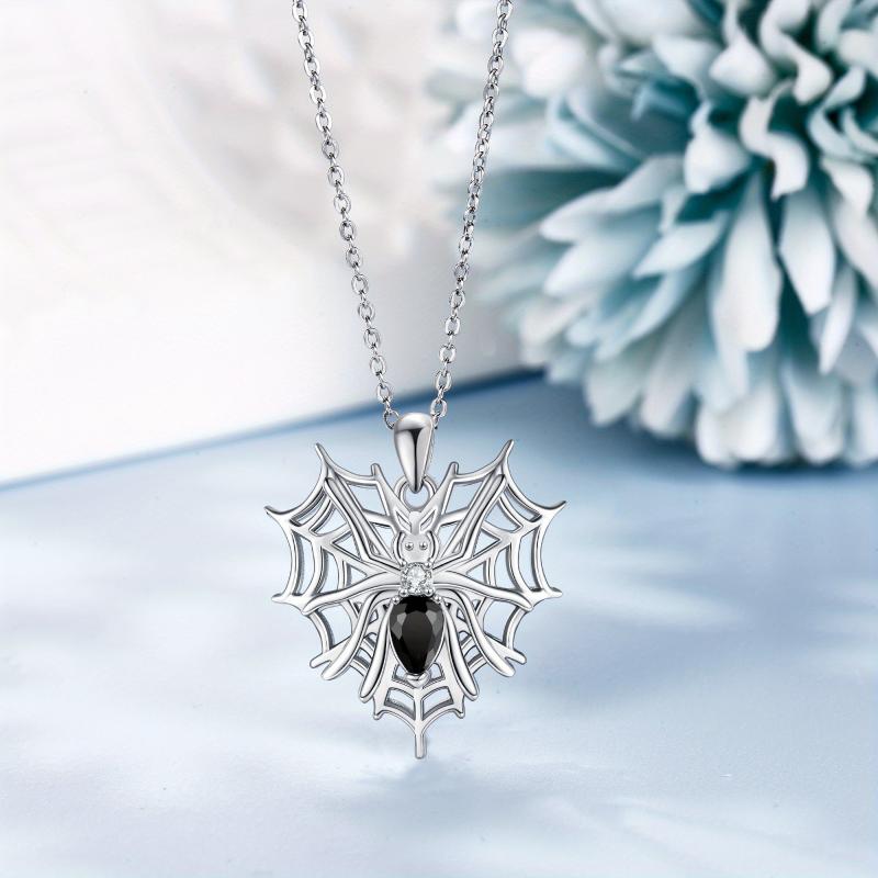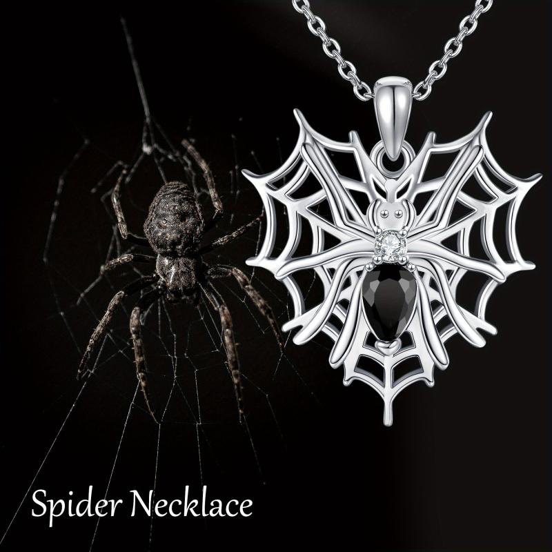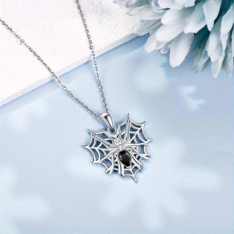 This 925 Sterling Silver necklace features a heart-shaped spider web pendant, ideal for those who love Gothic style jewelry.