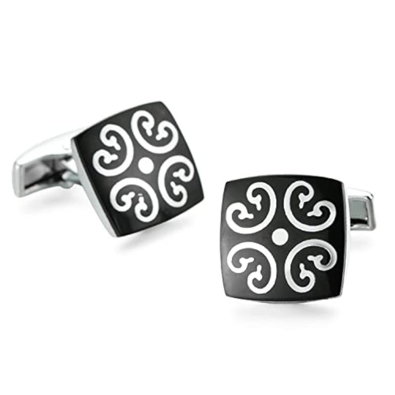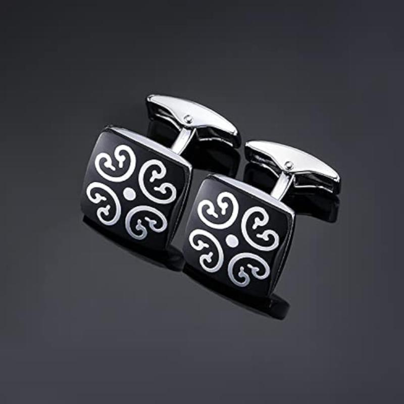 Enhance your style with these stylish silver two tone cufflinks set, perfect for weddings and business events.
