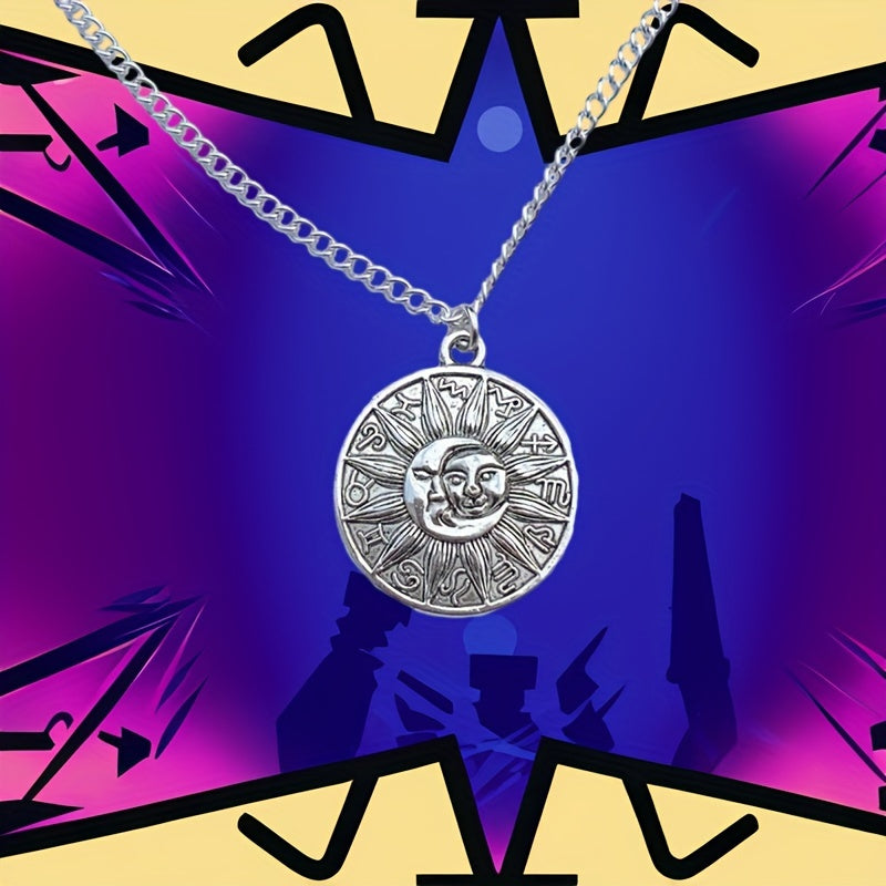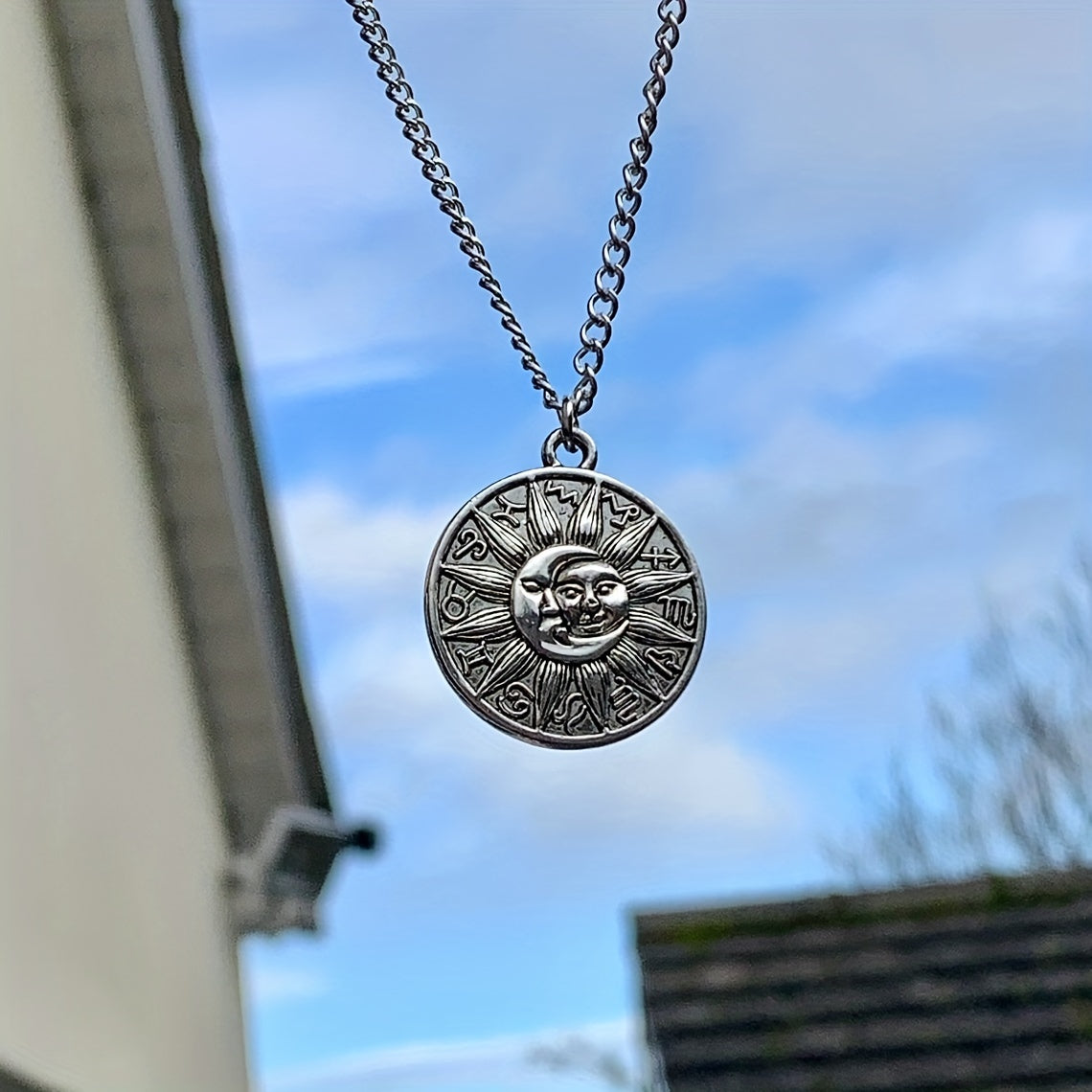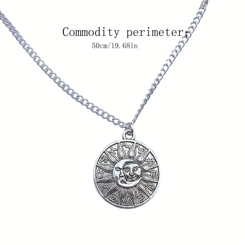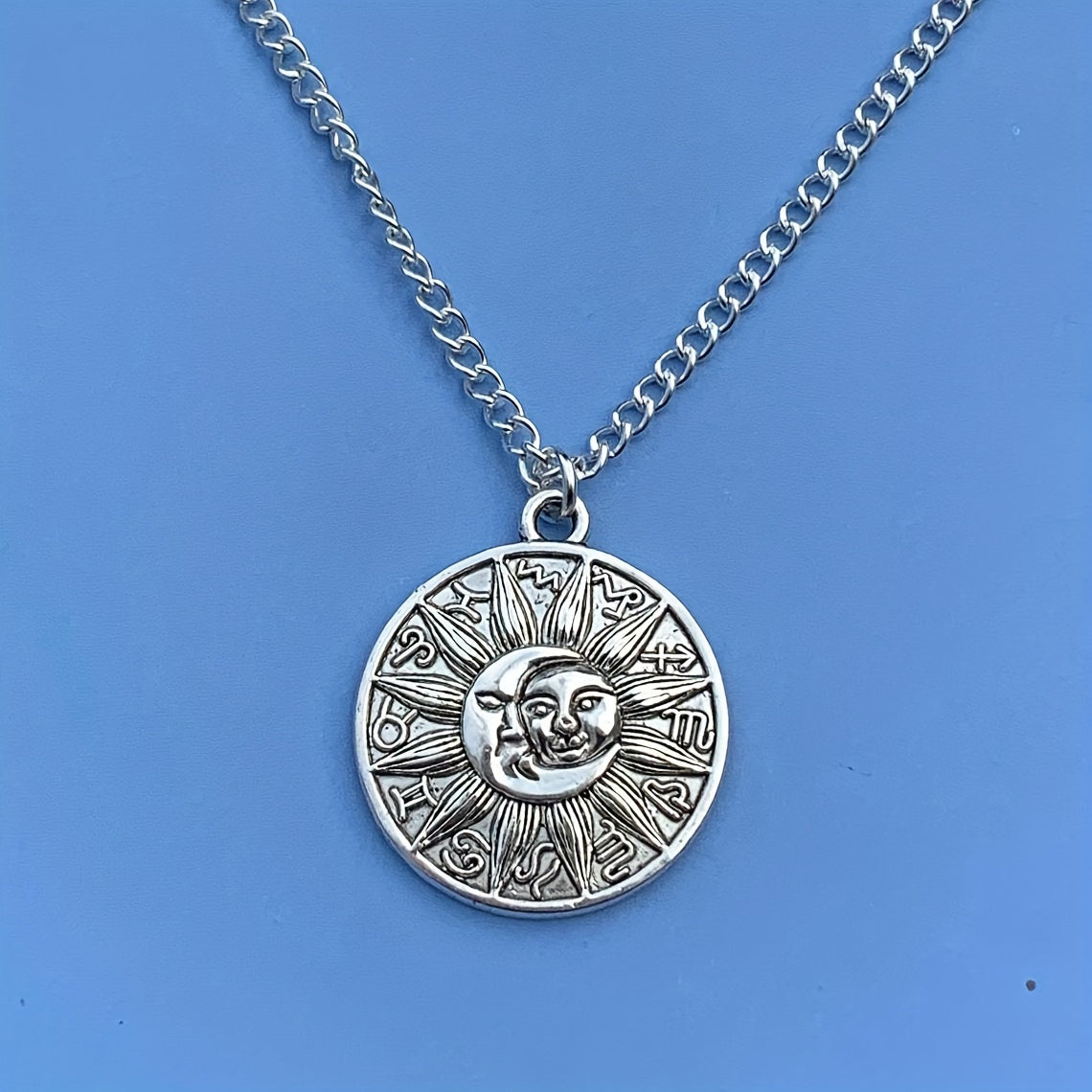 This stylish silver necklace features zodiac moon and sun design, perfect for hip hop lovers. Ideal gift for Christmas or birthdays for both men and women.