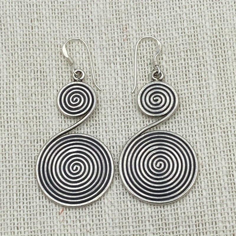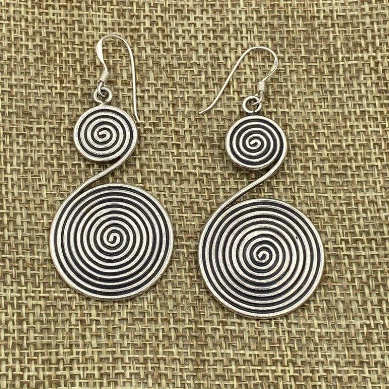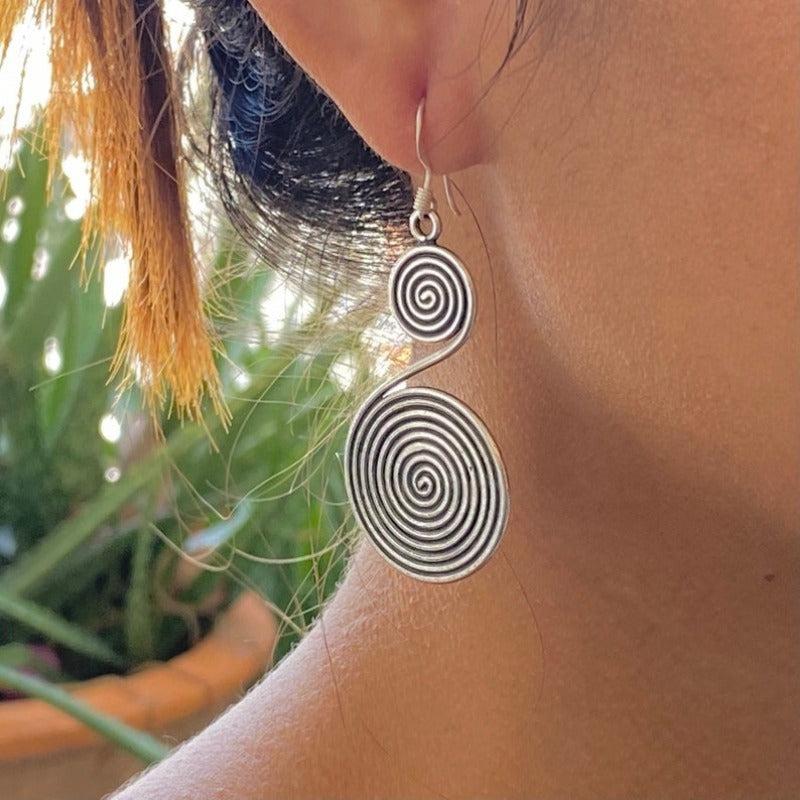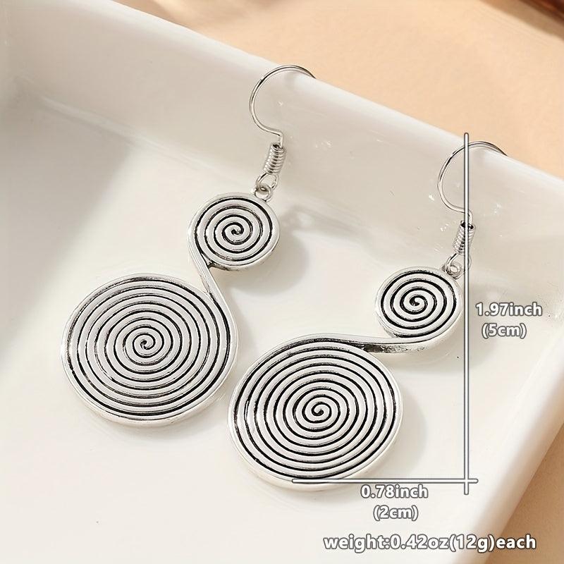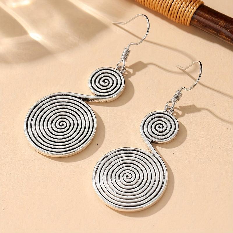 These large dangle earrings make a bold statement with their silver spiral design. Ideal gift for boho lovers and those who appreciate unique jewelry.