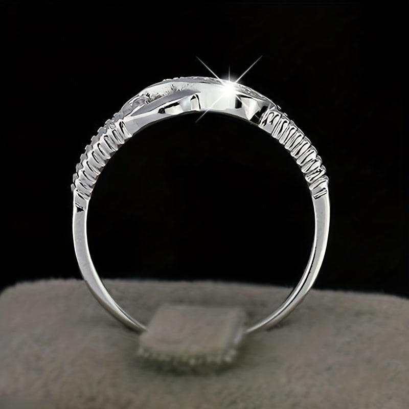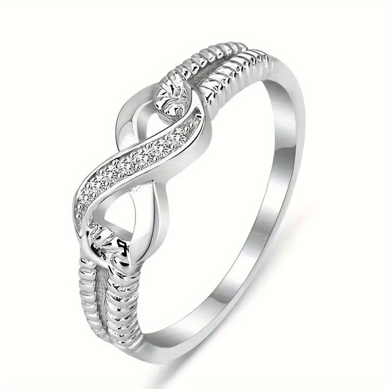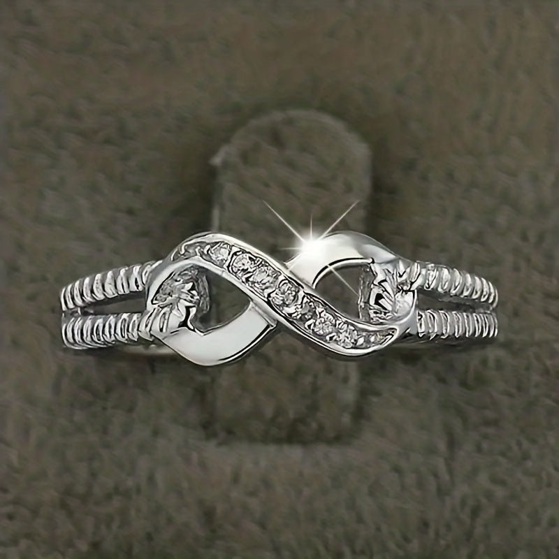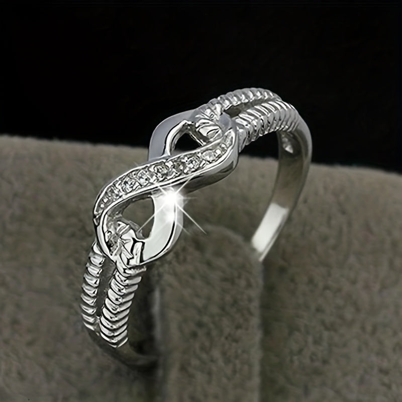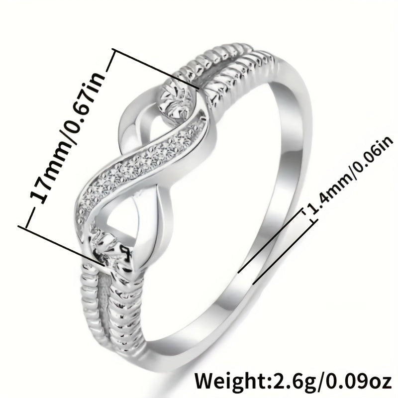 This elegant and stylish ring features a silvery bowknot design with a letter '8' and an infinity symbol, perfect for engagements, weddings, or promises. Ideal for both men and women.