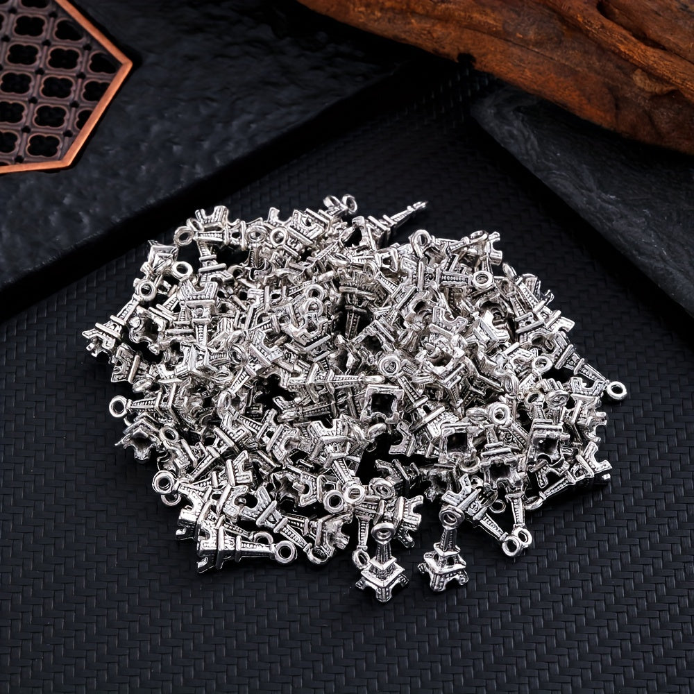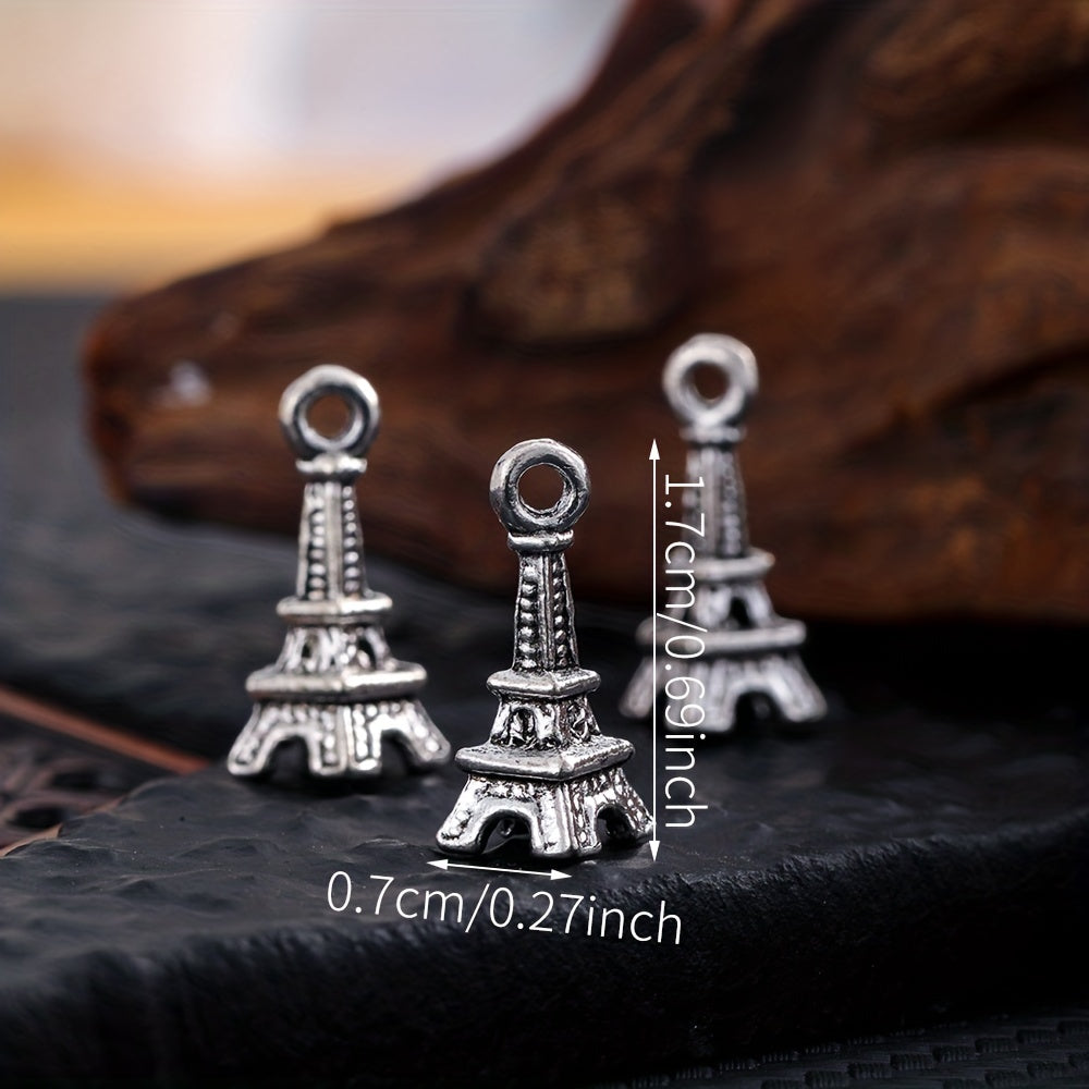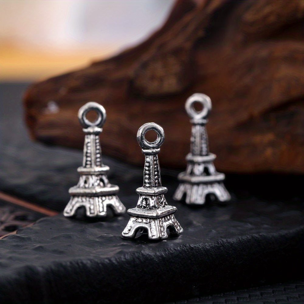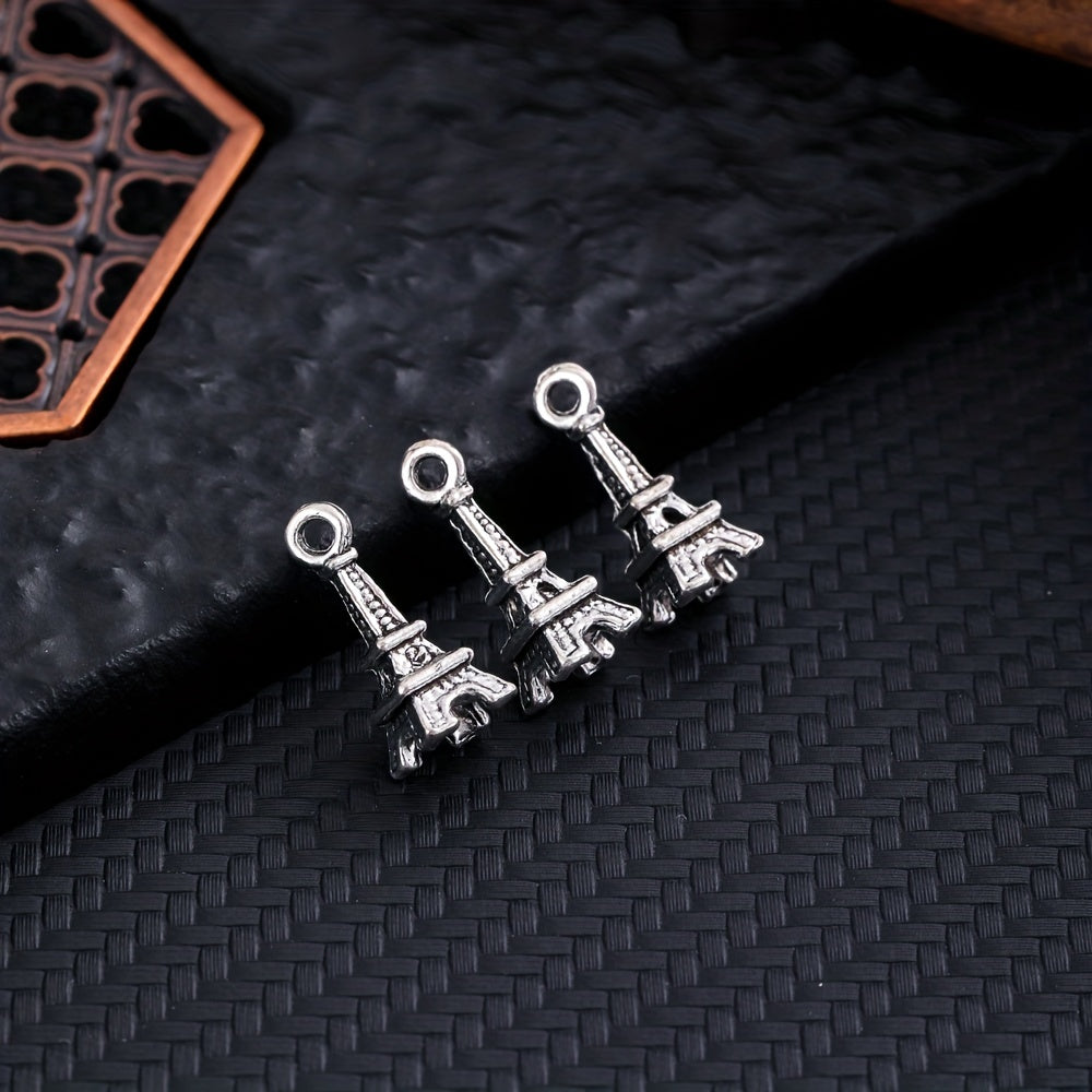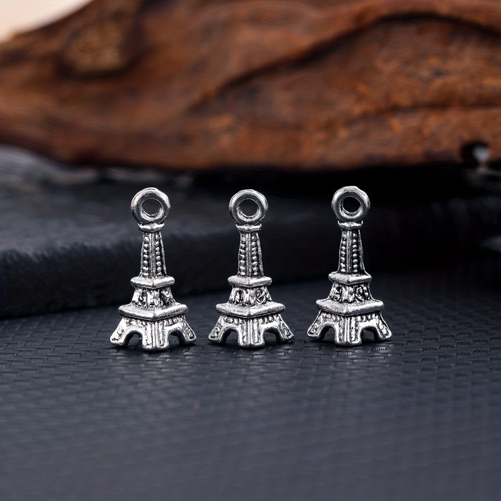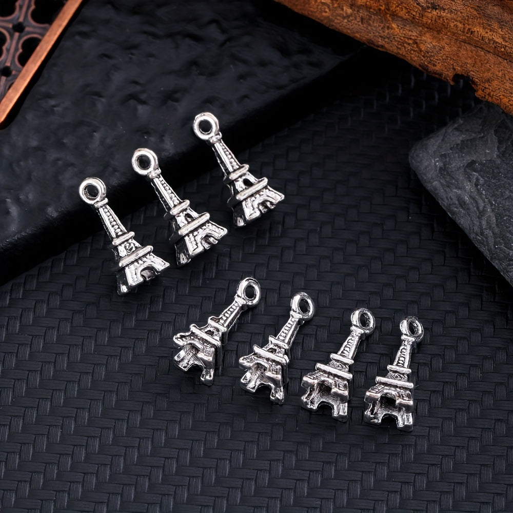 Create stunning jewelry with these Eiffel Tower pendants. Perfect for necklaces, bracelets, and earrings. Made of high-quality alloy with an openwork design. Electroplated for a shiny silver finish. Available in 10, 50, or 100 piece packs.