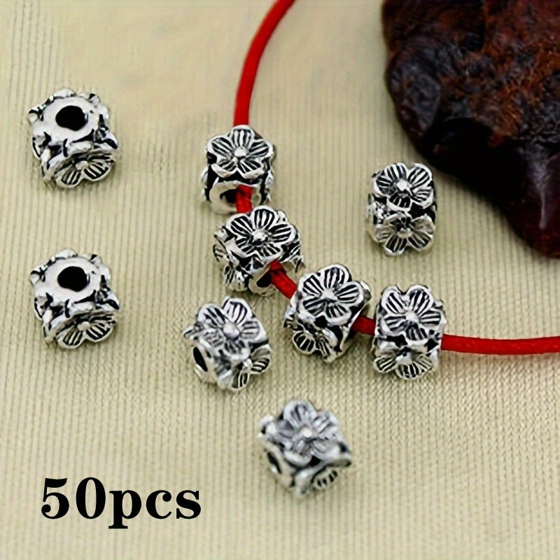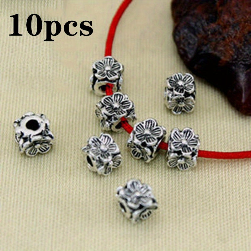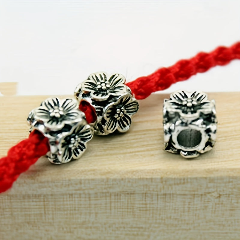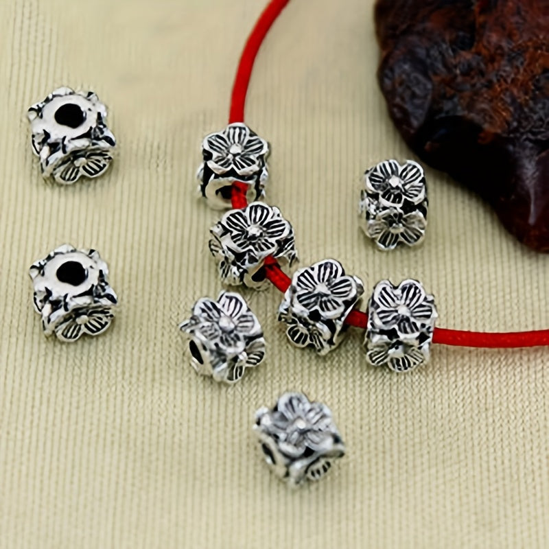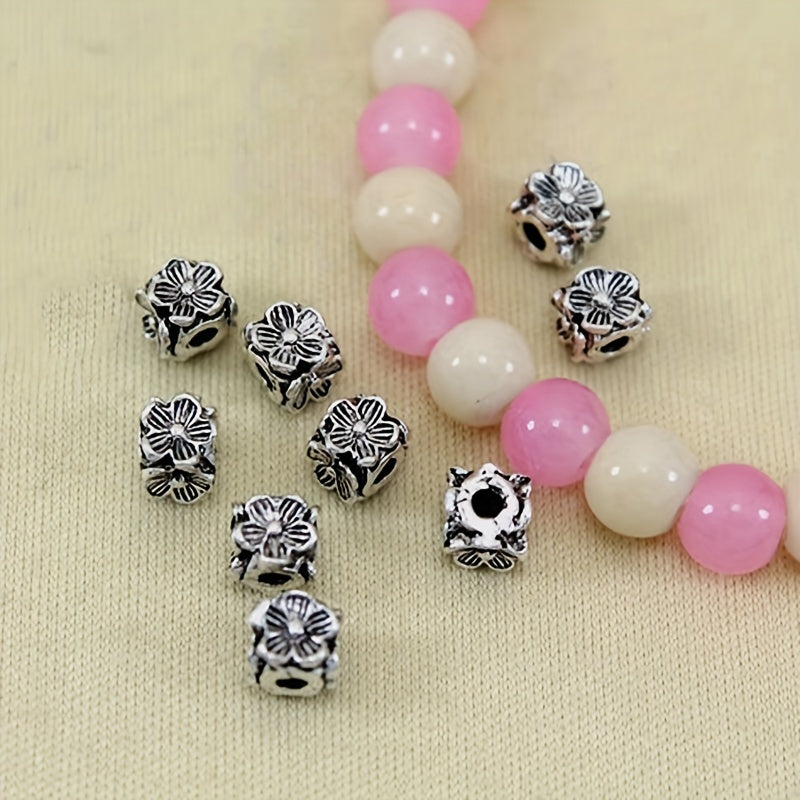 Beautiful four-sided peach flower beads made of Tibetan silver, perfect for DIY bracelets and necklaces. Semi-finished jewelry components.