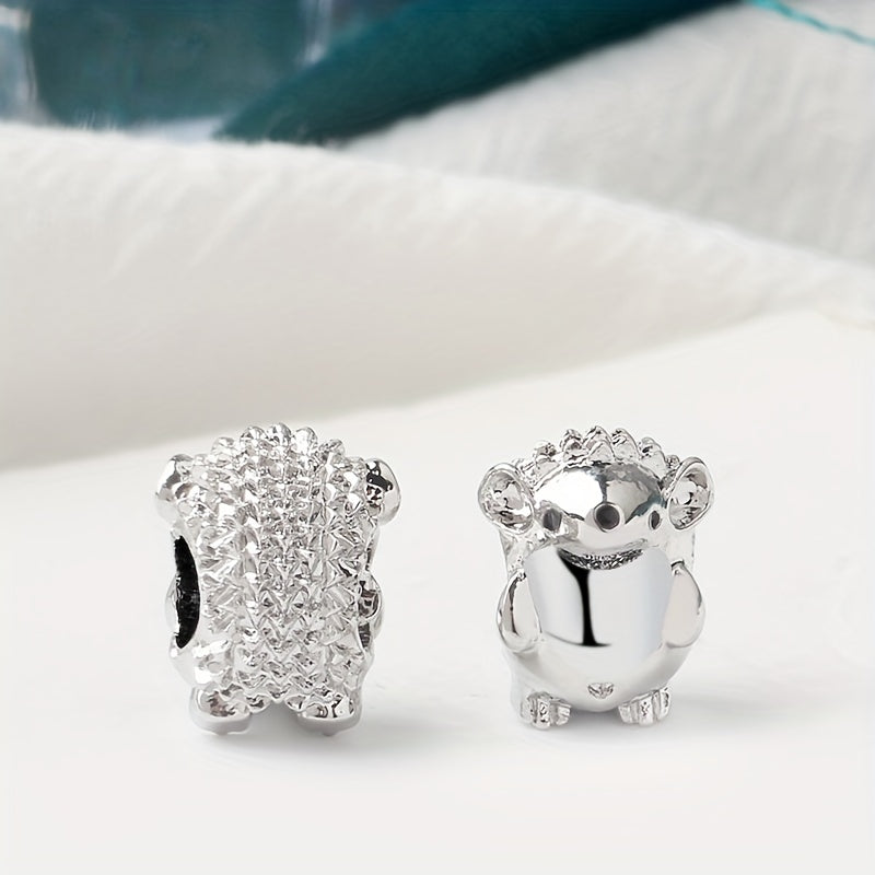 Add a touch of charm to your DIY bracelet with this silvery hedgehog alloy bead. Its large hole design makes it easy to string onto your bracelet.