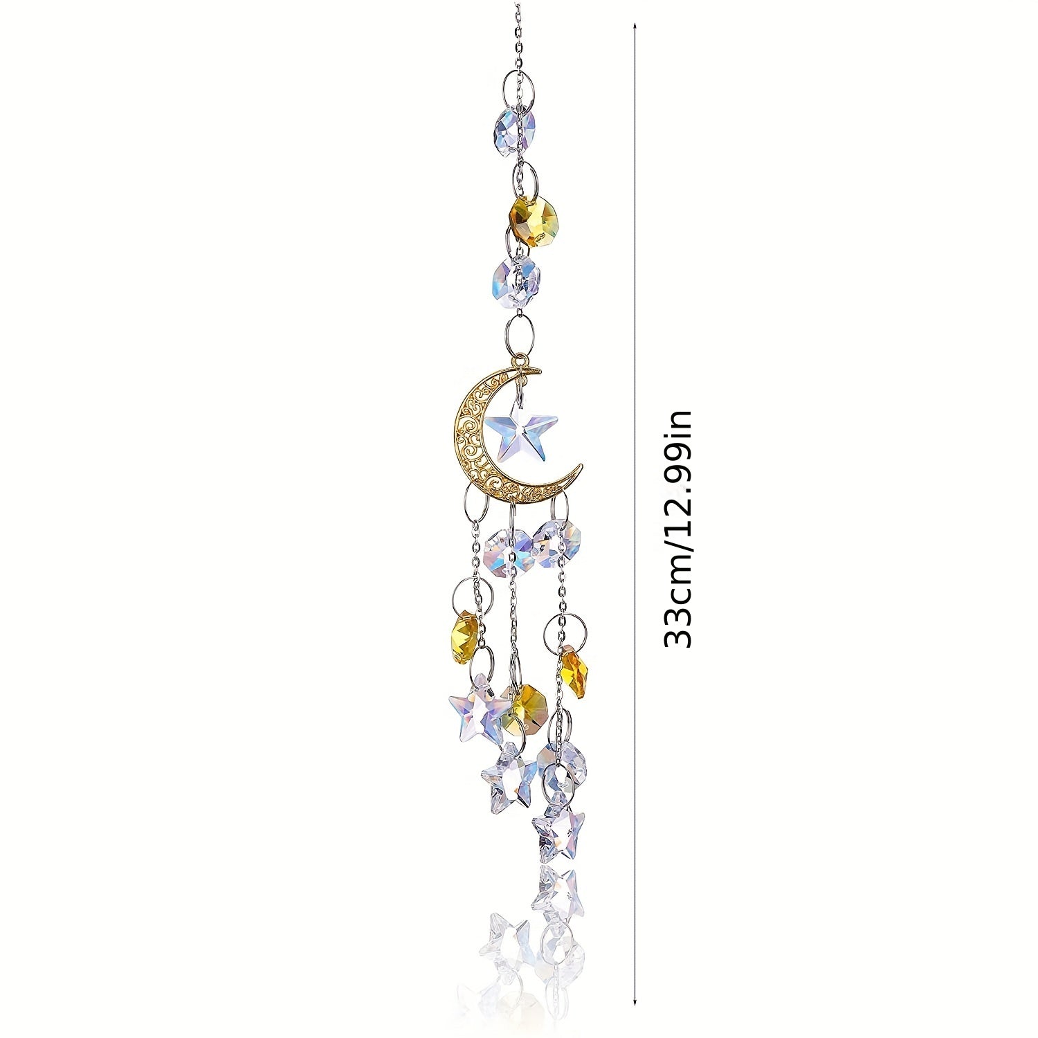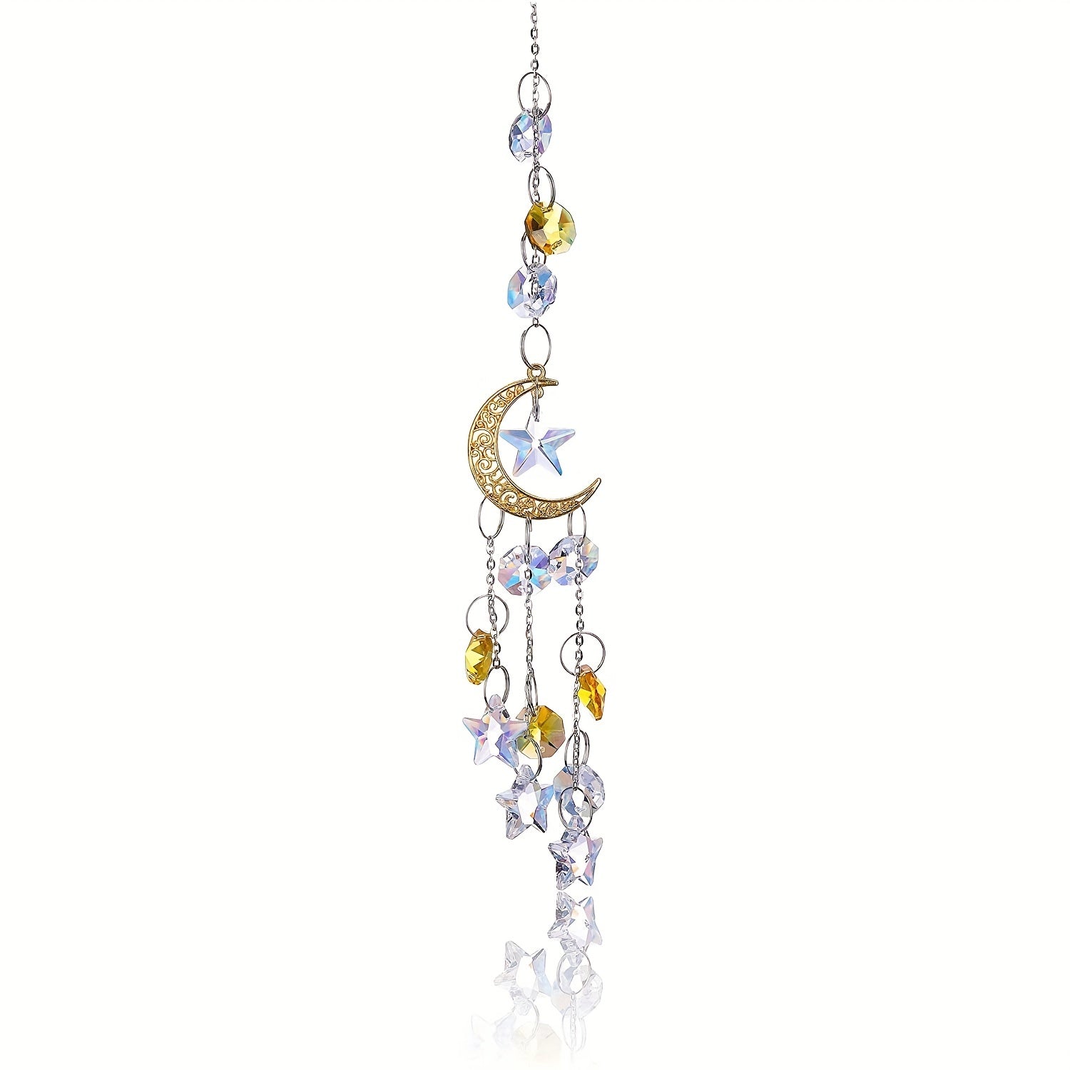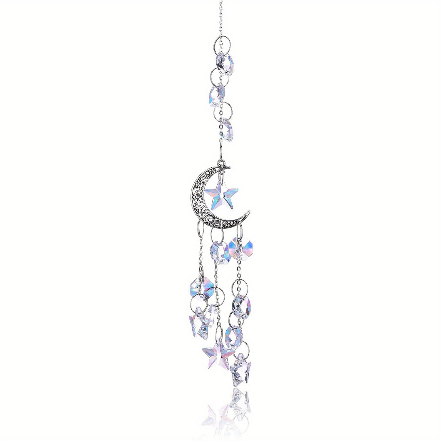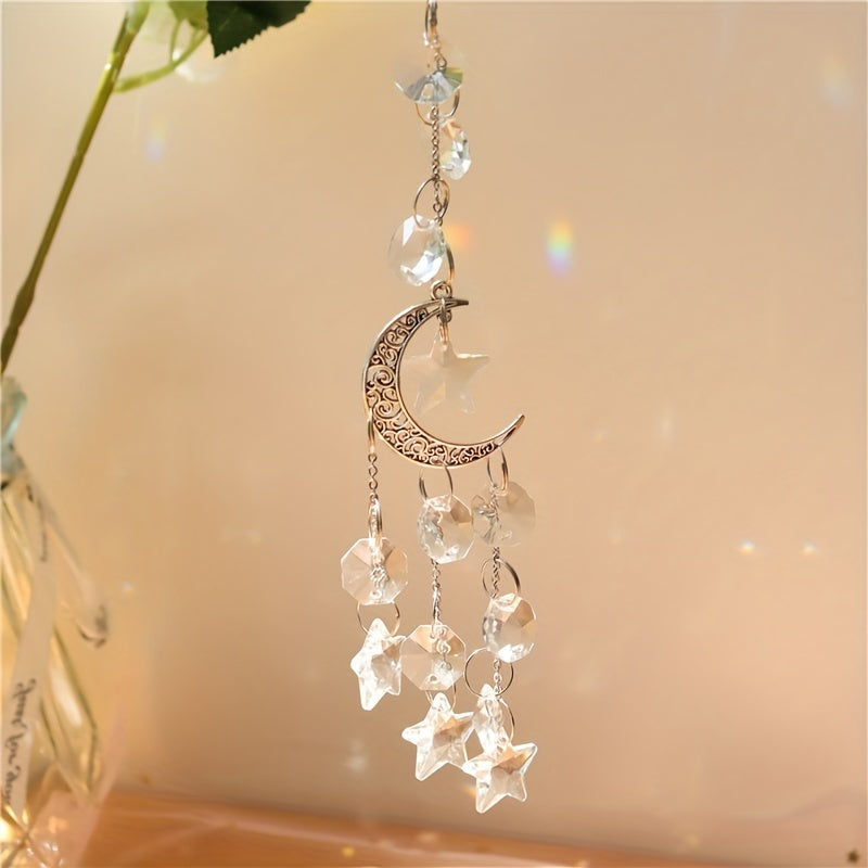Add a touch of elegance with this silvery hollow crescent and crystal star pendant. Perfect for creating unique jewelry pieces or home decor.