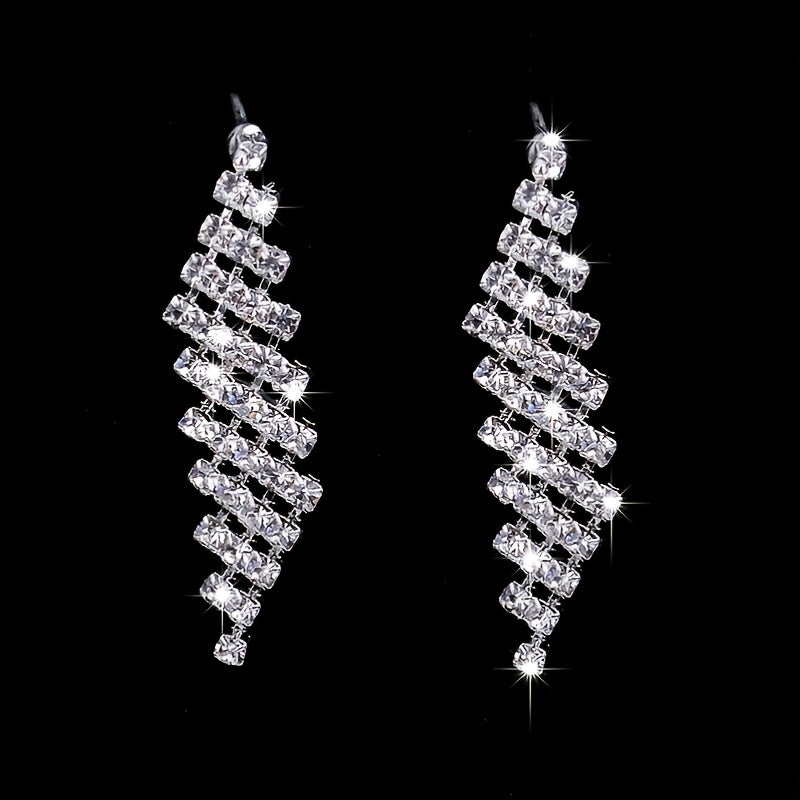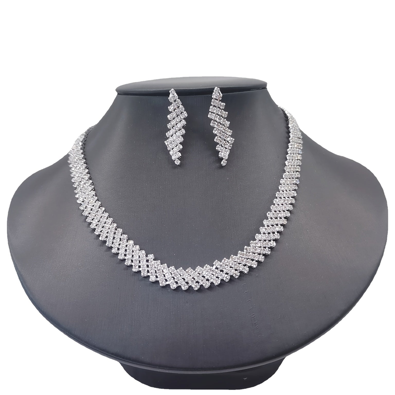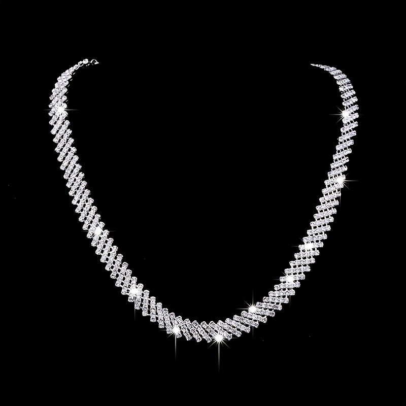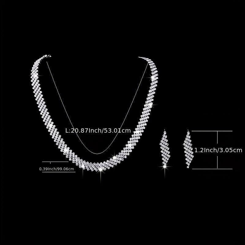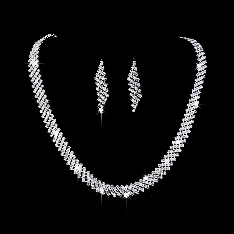 This stunning jewelry set features a silvery rhinestones necklace and earrings, perfect for a bride, women, or girls. The set is silver plated and adorned with birthstones, making it ideal for weddings, engagements, or special occasions.