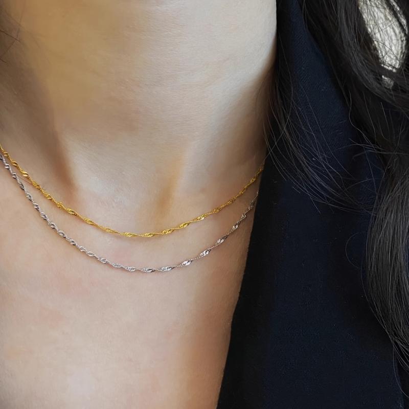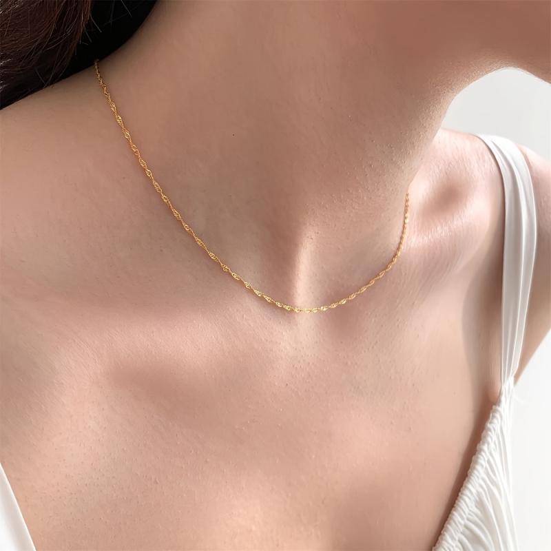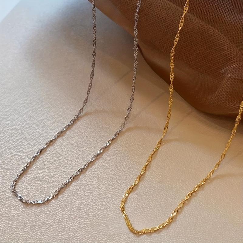 Elegant S925 wave chain collarbone necklace, minimalist and versatile design suitable for daily wear. Hypoallergenic material.