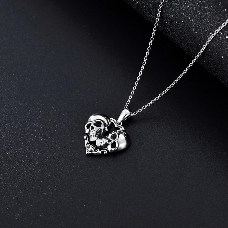 This stunning skull heart necklace is crafted from 925 sterling silver. A unique and stylish piece perfect for women.
