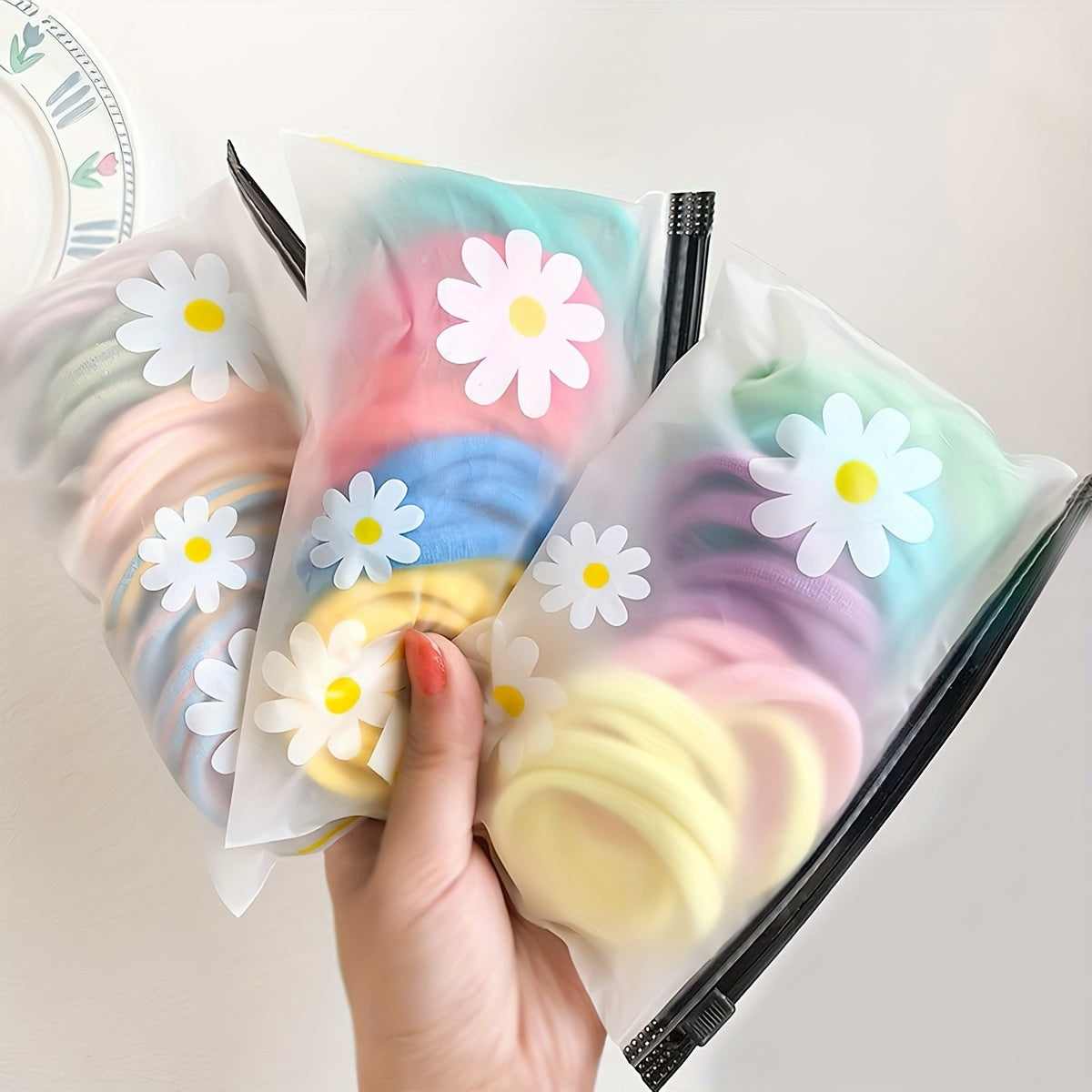 Keep your jewelry and hair accessories organized and safe with these small bags featuring a charming daisy pattern.