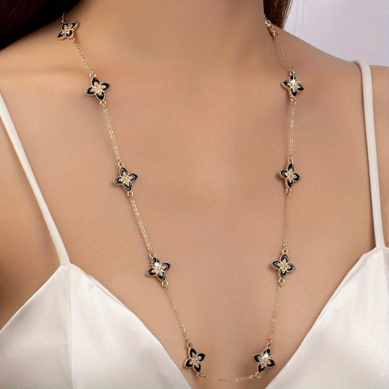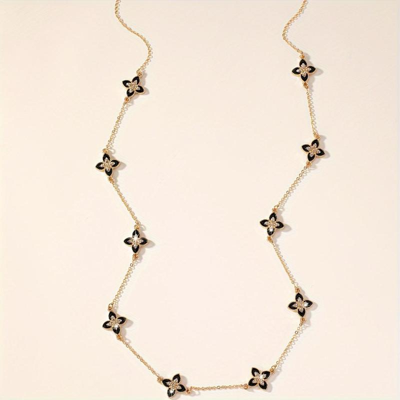 This small flower pendant necklace is crafted from zinc alloy and features a long chain. It adds a stylish touch to any outfit.