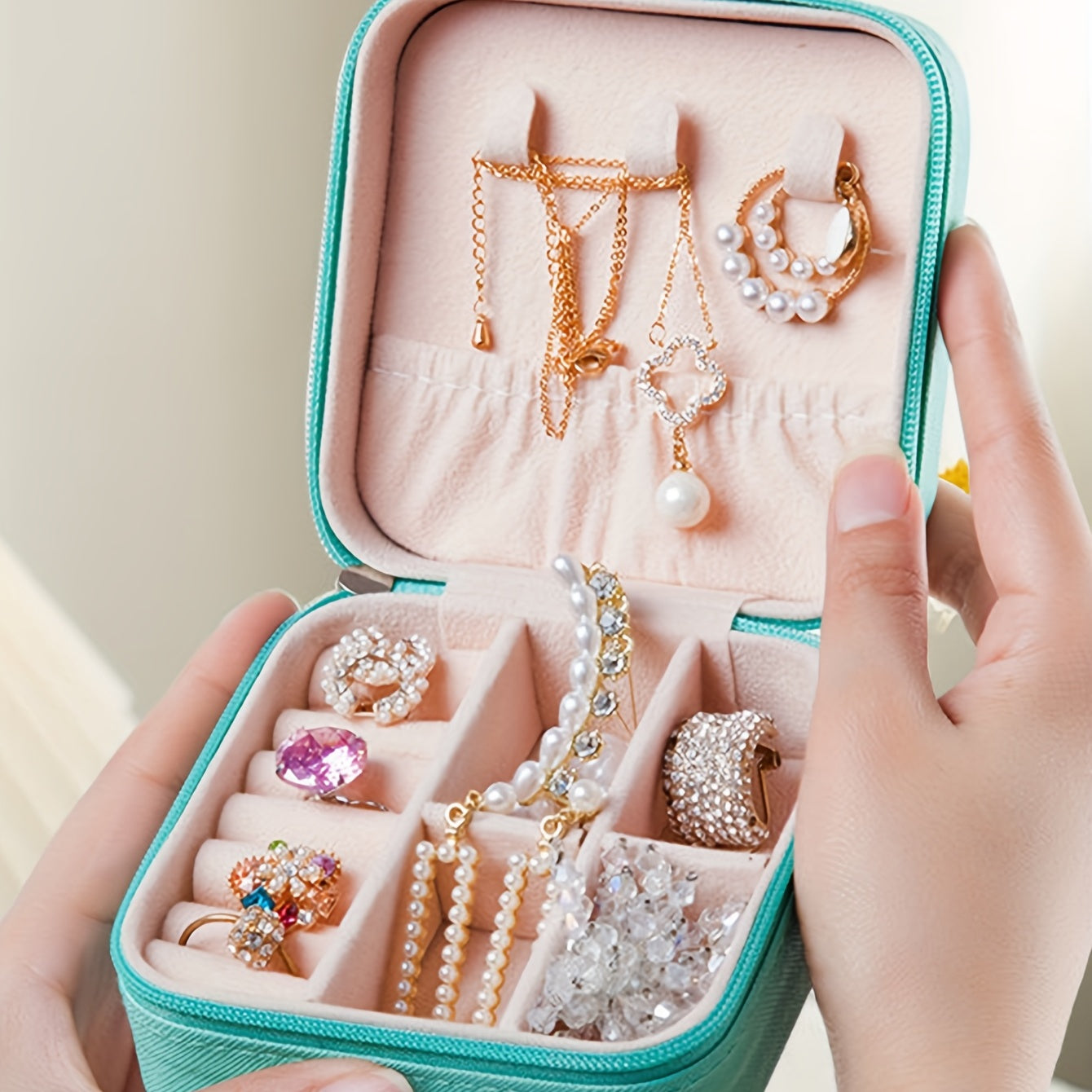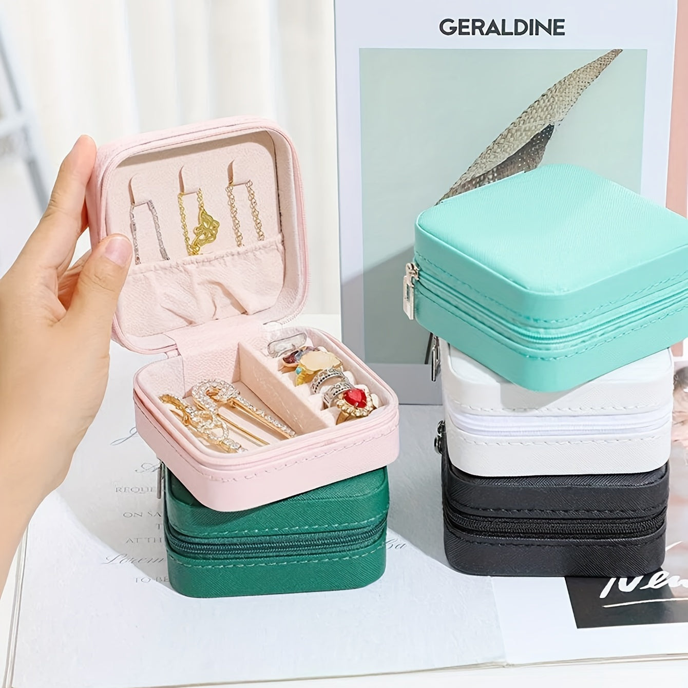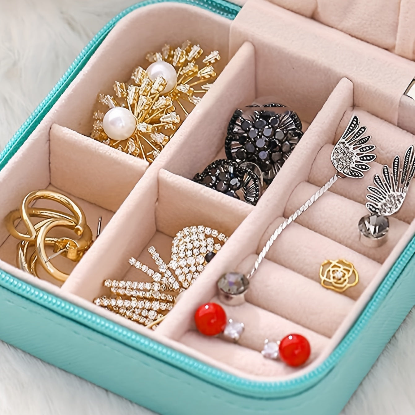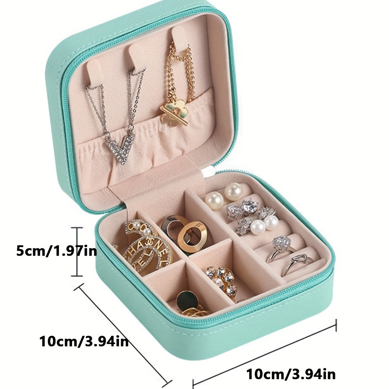 Keep your jewelry safe and organized while traveling with this double-layered PU leather travel jewelry box. It's perfect for storing your stud earrings and small accessories.