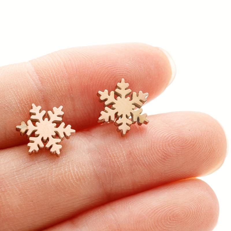 These snowflake stud earrings are perfect for the Christmas season. Made of high-quality stainless steel, they add a touch of elegance to any outfit.