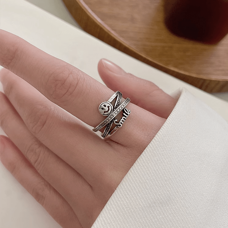 Celebrate your anniversary or wedding with this stylish couple jewelry gift. These rings feature a smile face design and letter detailing.