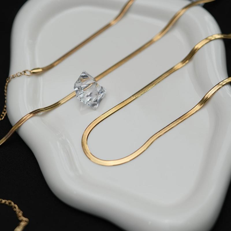 Elevate your style with this elegant necklace featuring a variety of chain styles in a trendy 18K gold plating.