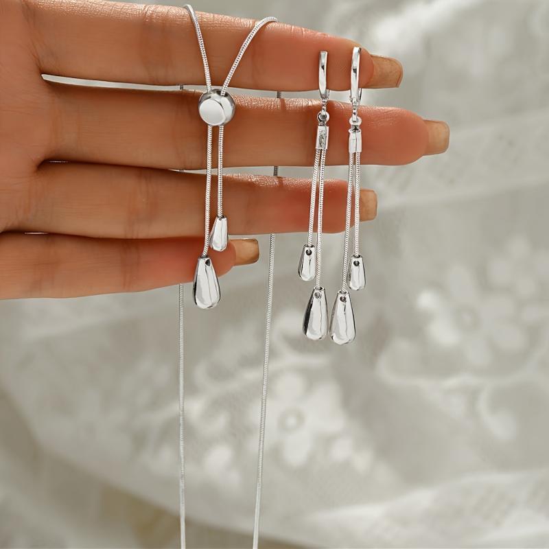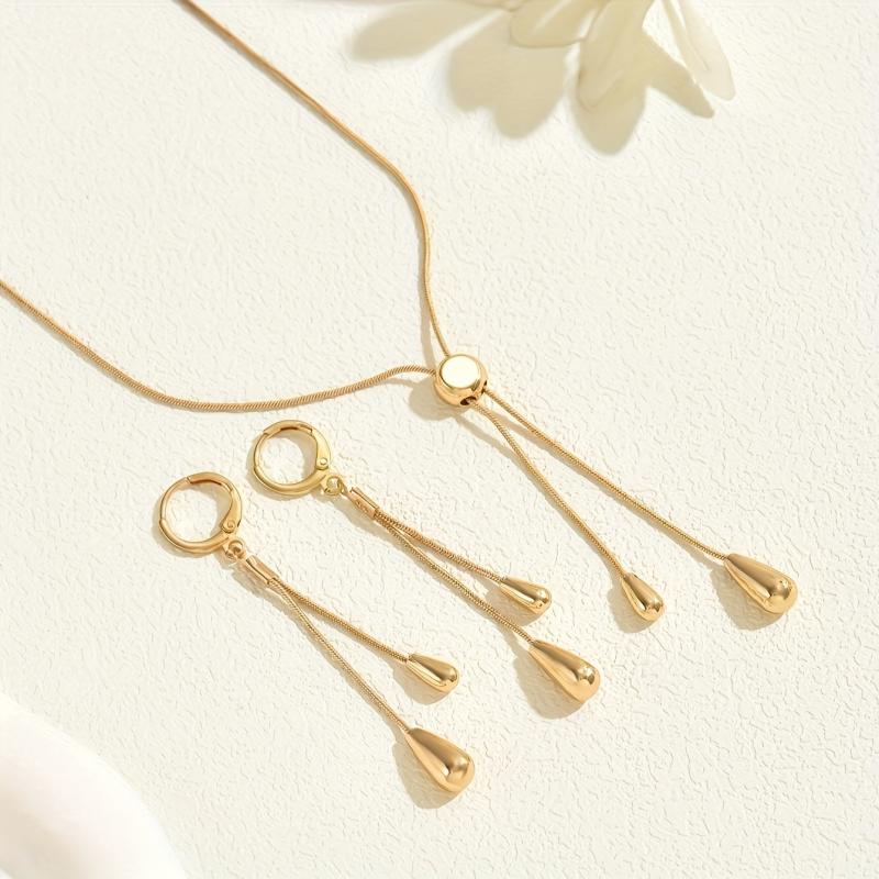 Snake Chain Geometric Water Drop Tassel Necklace Set