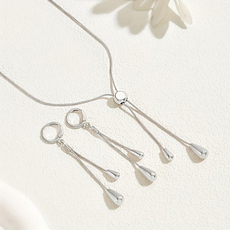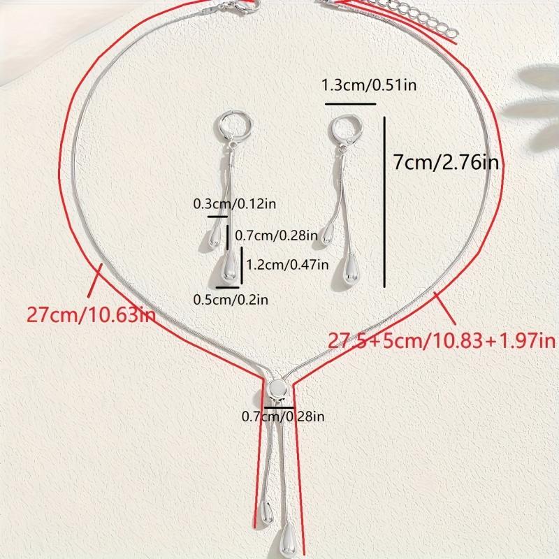 Complete your stylish look with this set of 3 fashionable geometric water drop pendant tassel necklaces and earrings. Perfect for enhancing your outfit.