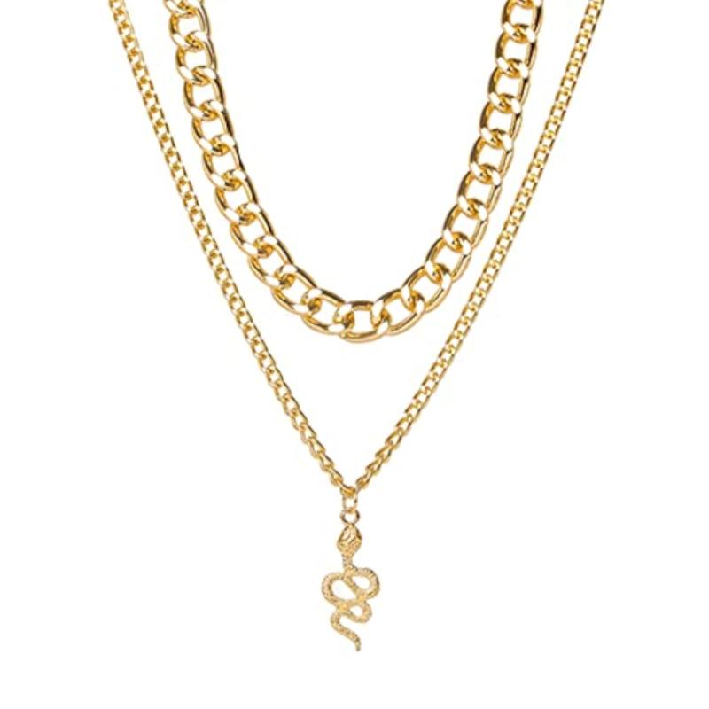 Elevate your style with this plated snake inspired layered necklace. Perfect for adding a touch of edgy charm to your look.