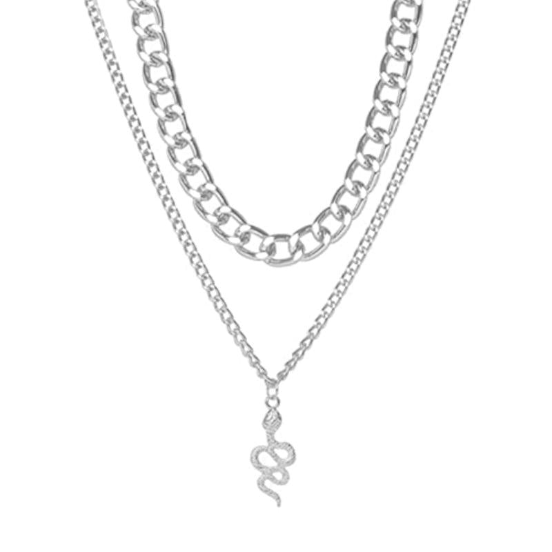 Elevate your style with this stunning snake inspired layered necklace. Made with high-quality materials and plated in gold, this necklace is perfect for adding a touch of glamour to any outfit.