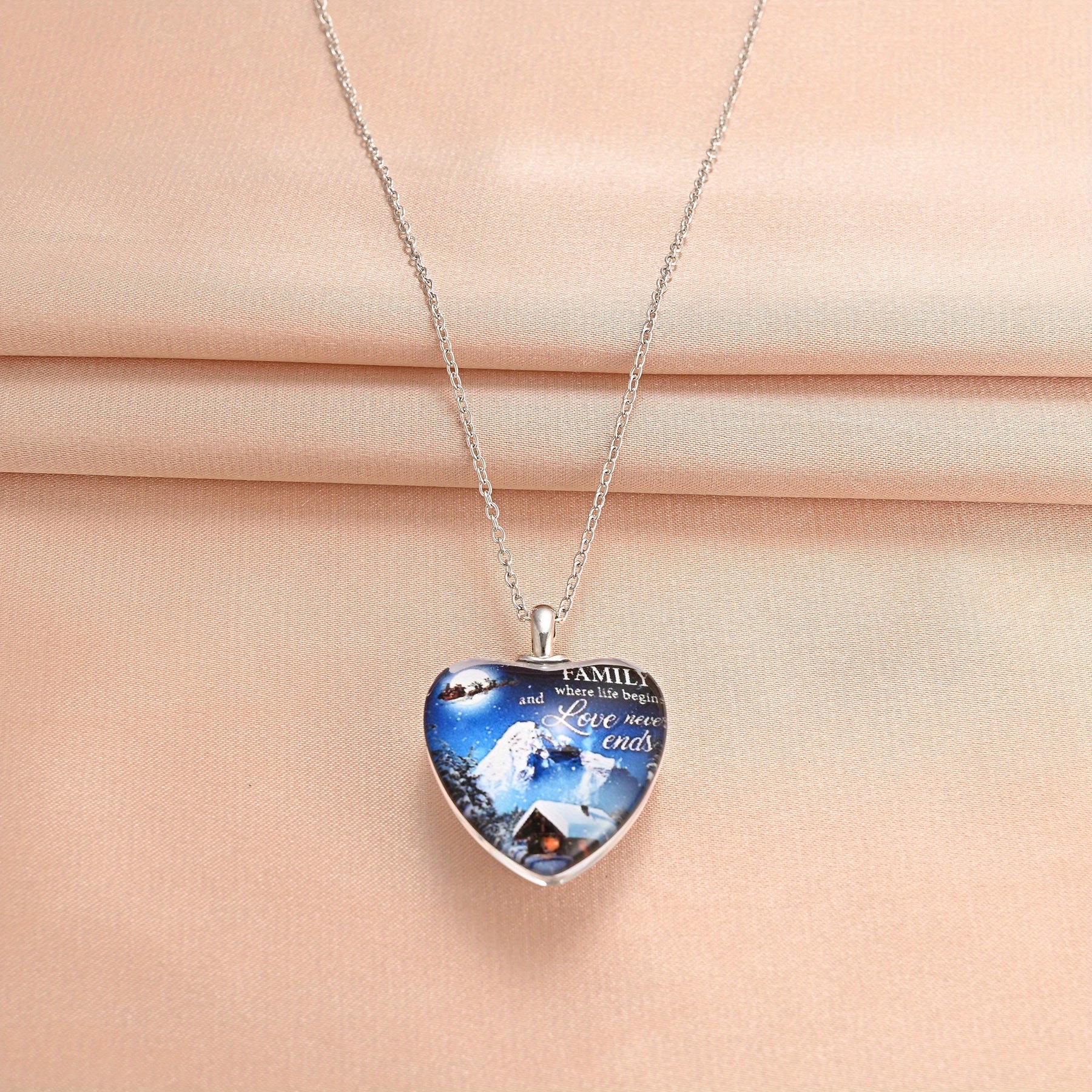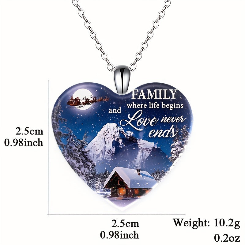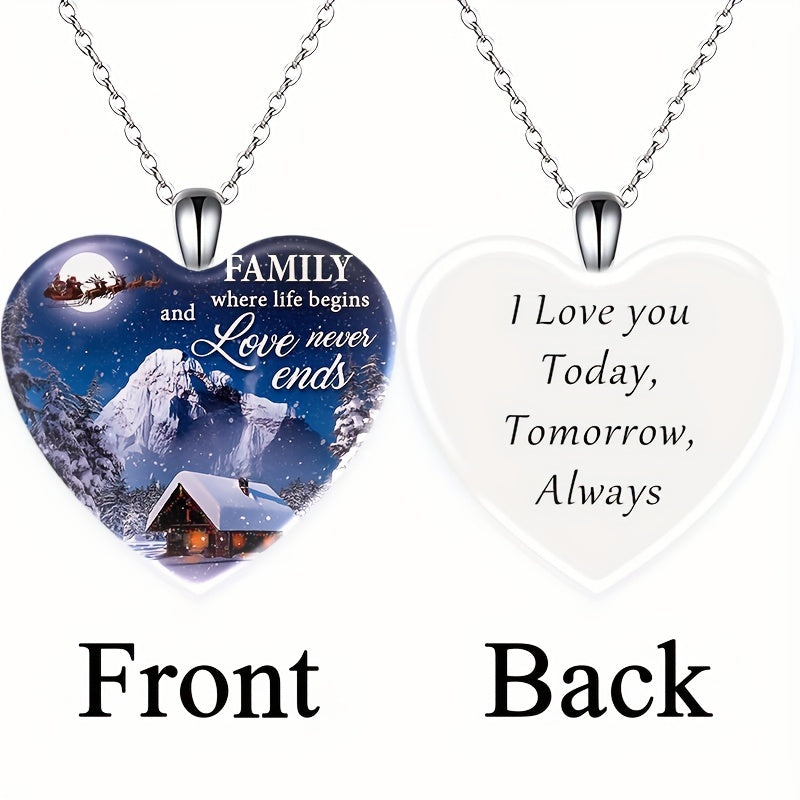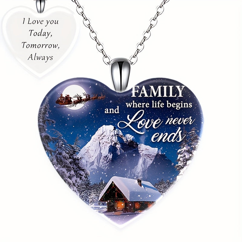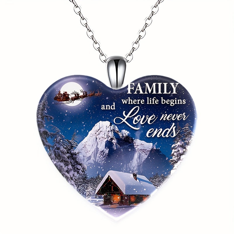This beautiful pendant necklace features a snow mountain print, perfect for the holiday season. A great gift for Christmas or any winter celebration.