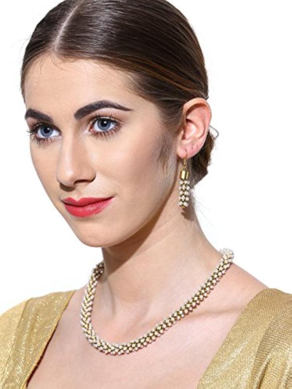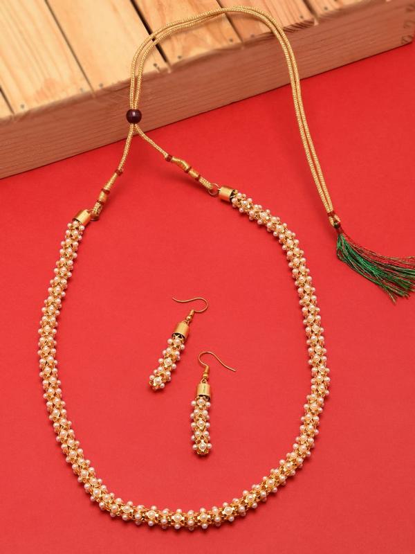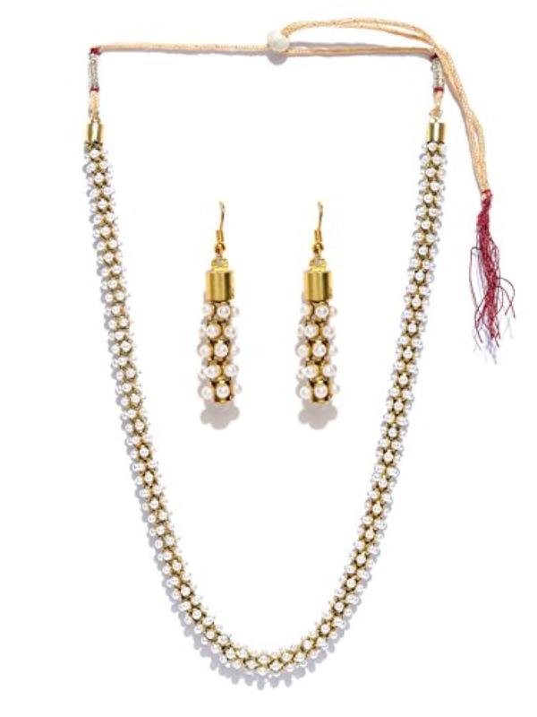 Elegant South Indian Style Necklace Set with pearl beads for a traditional look.