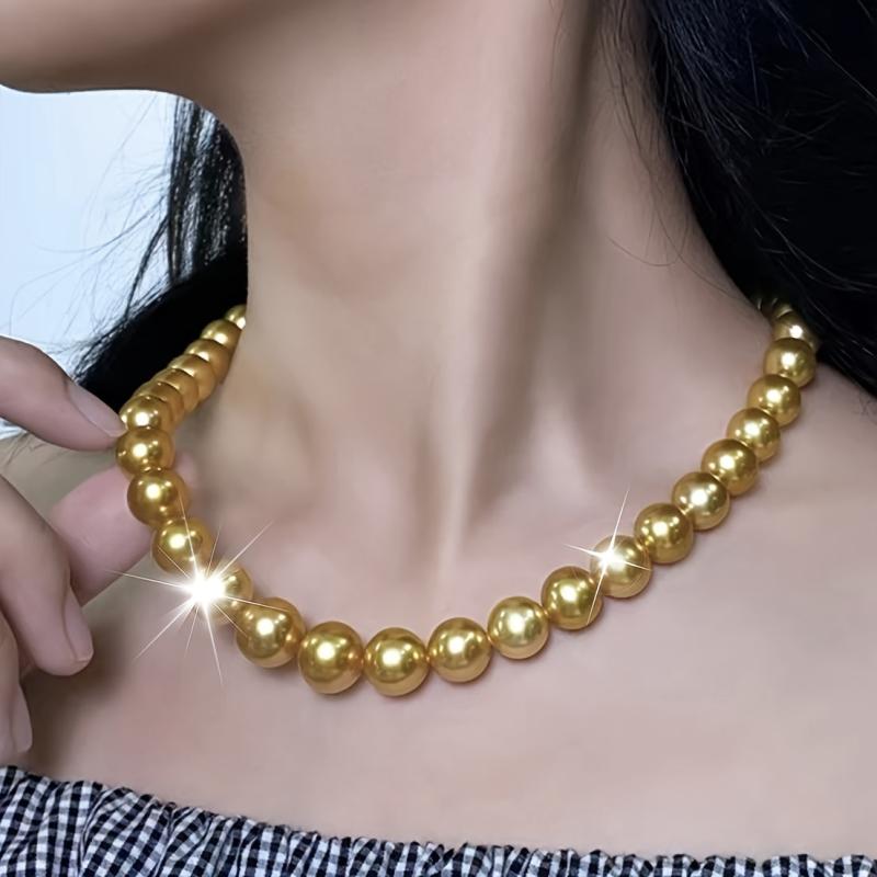 South Ocean Golden Freshwater Pearls Necklace for Women