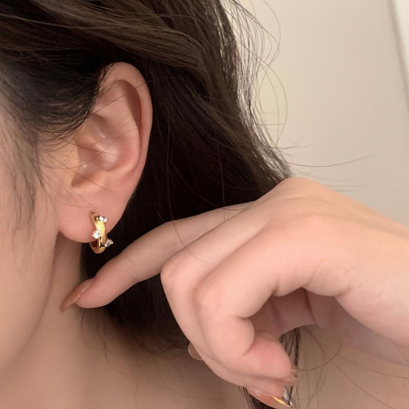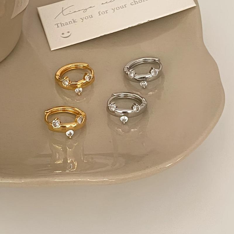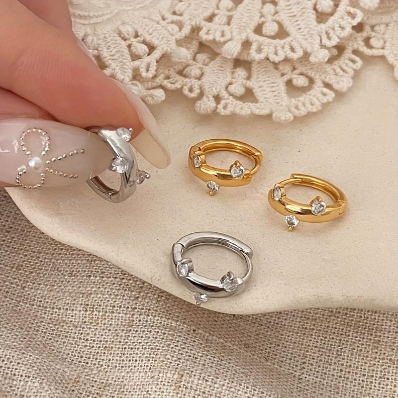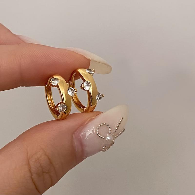 Vintage-inspired irregular hoop earrings with a touch of sparkle. Crafted in 14K gold plating and cubic zirconia stones. Perfect for Valentine's Day and everyday wear.