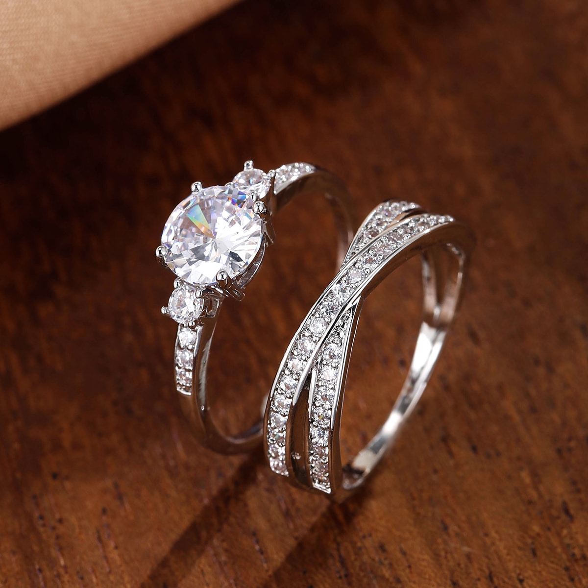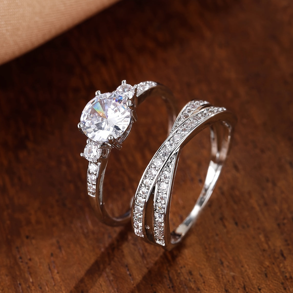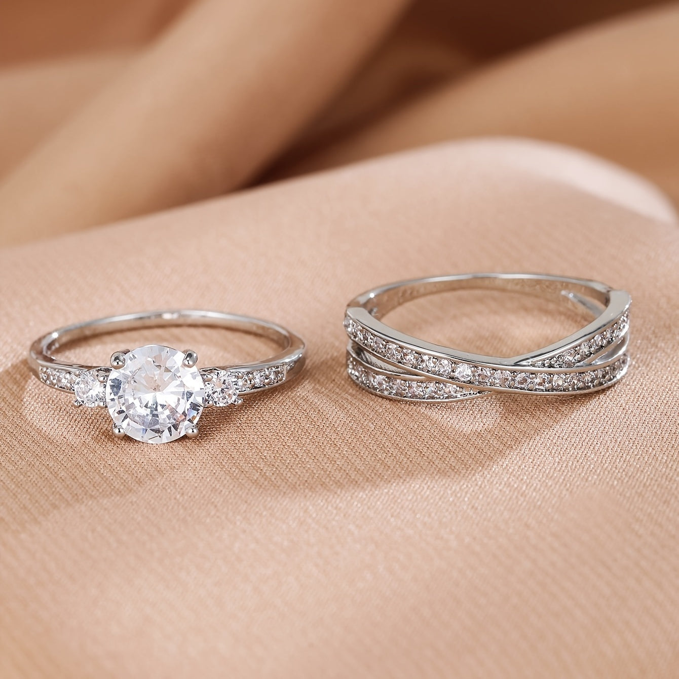 Enhance your style with this 2-piece set of delicate eternity band rings adorned with sparkling zircons. Perfect for parties, weddings, or engagement. Makes a great gift!