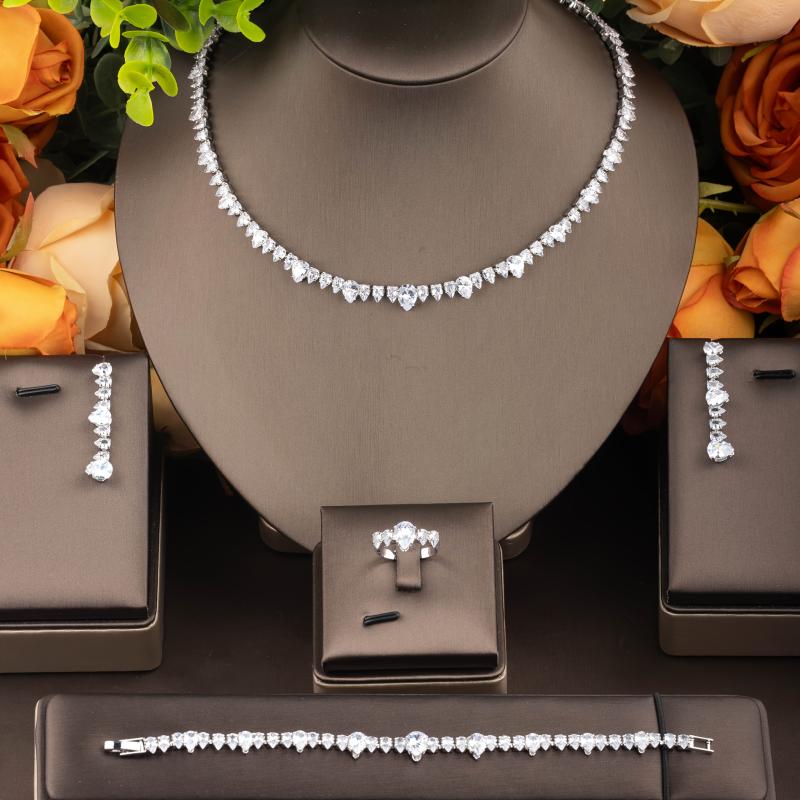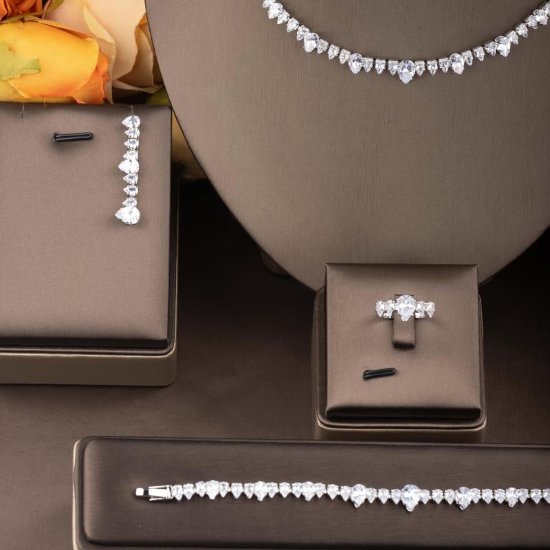 Elevate your style with this classic cubic zirconia jewelry set made of copper alloy. Perfect for daily wear or formal occasions, each piece is adorned with sparkling stones.