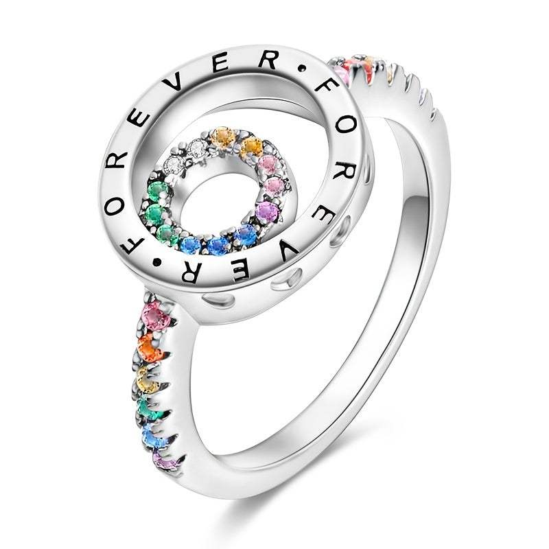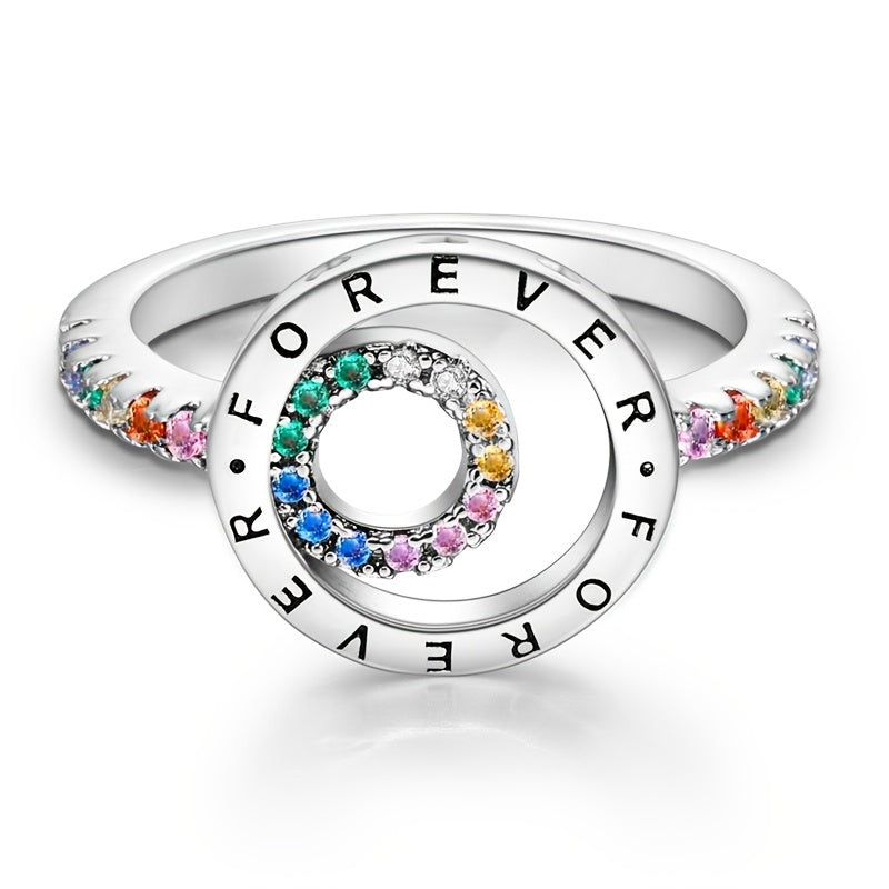 This beautiful ring features a round rainbow stone that sparkles in the light, symbolizing eternal family love. Perfect accessory for teens.