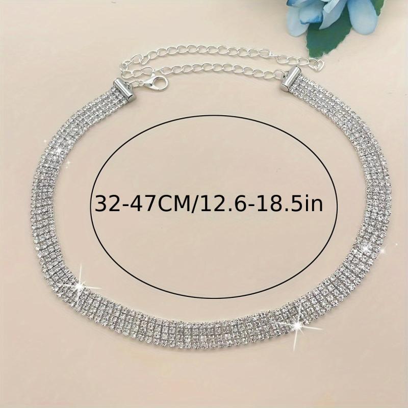 Make a dazzling statement with this silvery plated choker necklace adorned with sparkling rhinestones. Perfect for parties and evening events, this accessory will add a touch of glamour to your outfit.