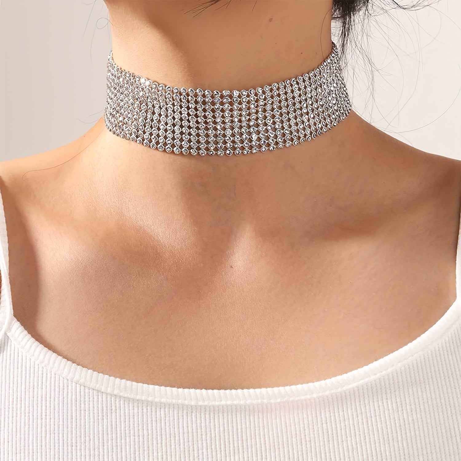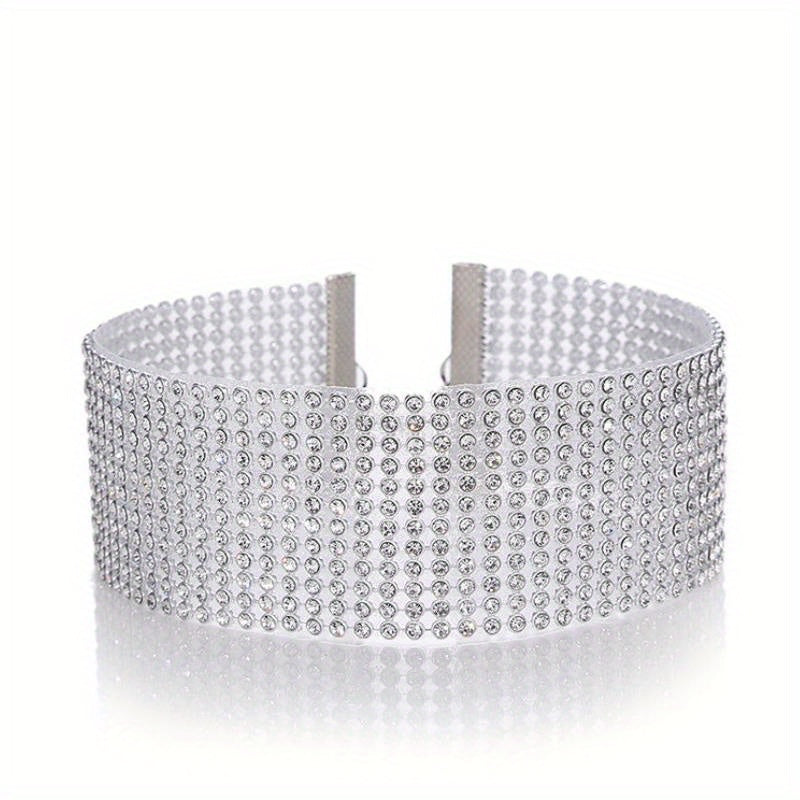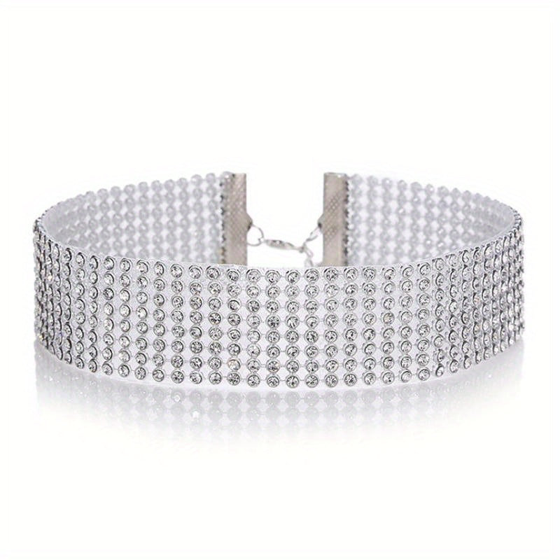 Elevate your style with this Personality Full Rhinestones Neck Chain Alloy Necklace. This stunning neck jewelry is perfect for adding a touch of glamour to any outfit.
