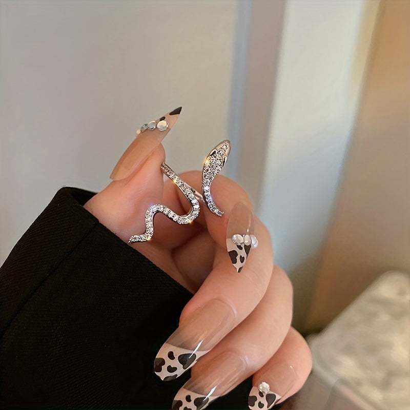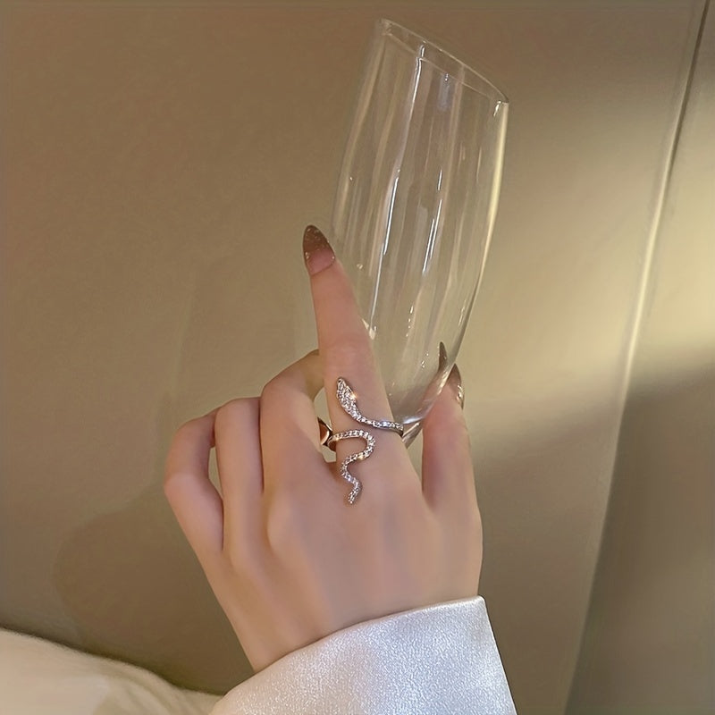 Elevate your style with this glamorous snake wrap ring featuring dazzling rhinestones. Perfect for adding a touch of sparkle to any outfit.