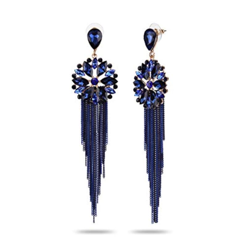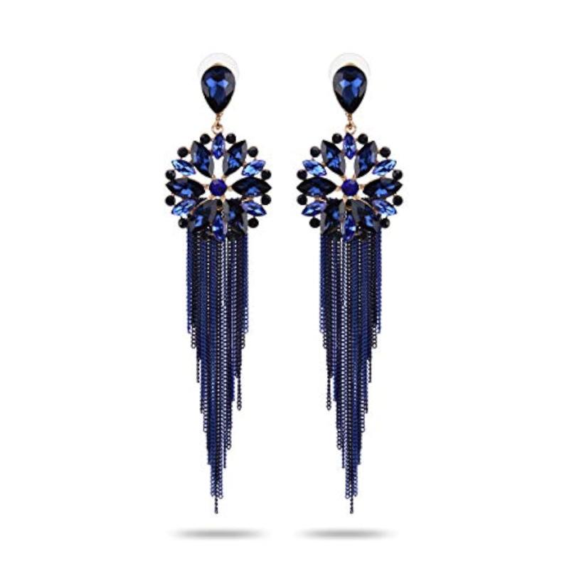 Add a touch of glamour to your outfit with these sparkly crystal tassel earrings that sway gracefully as you move.