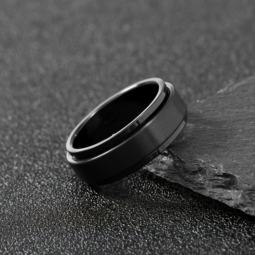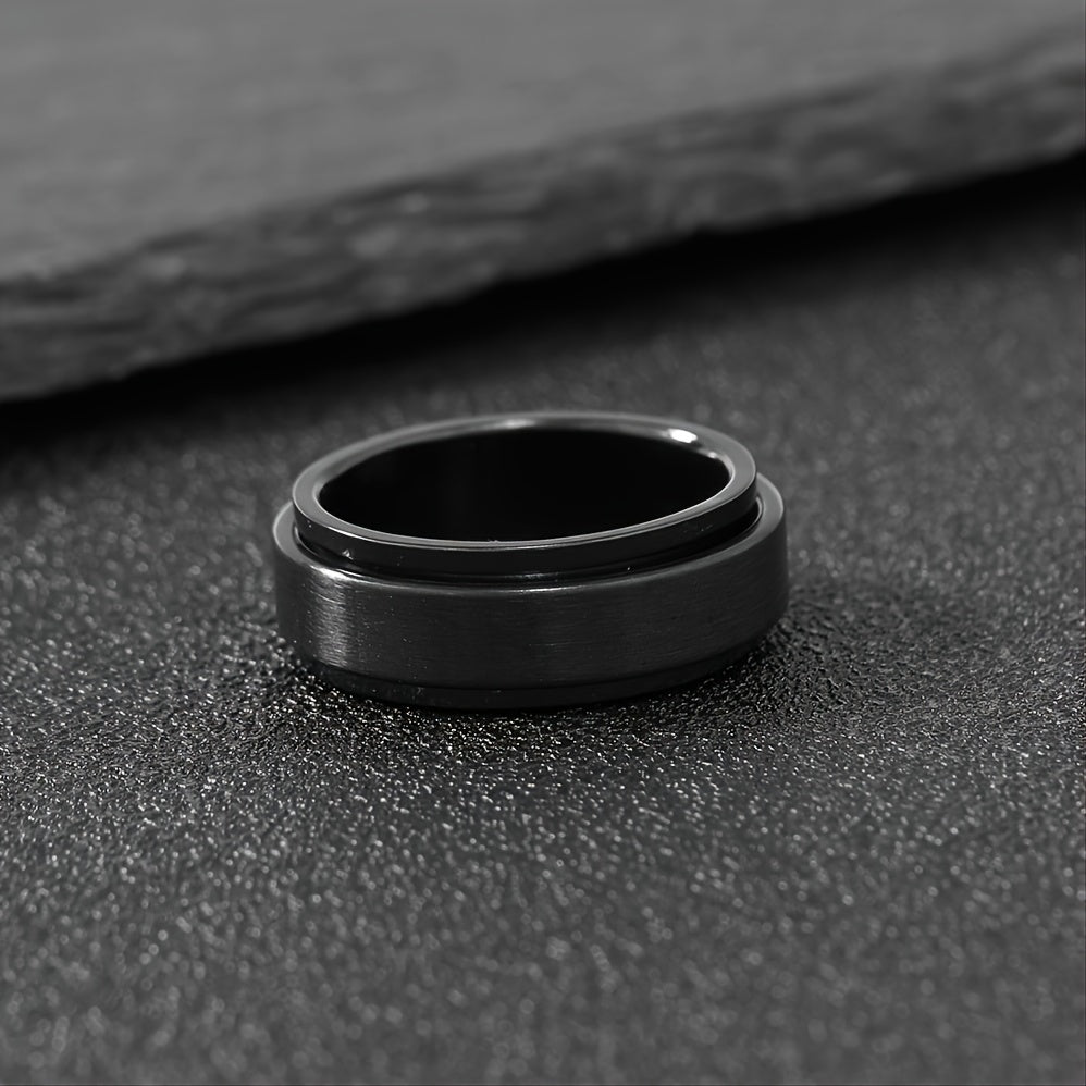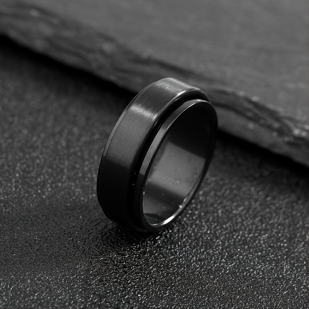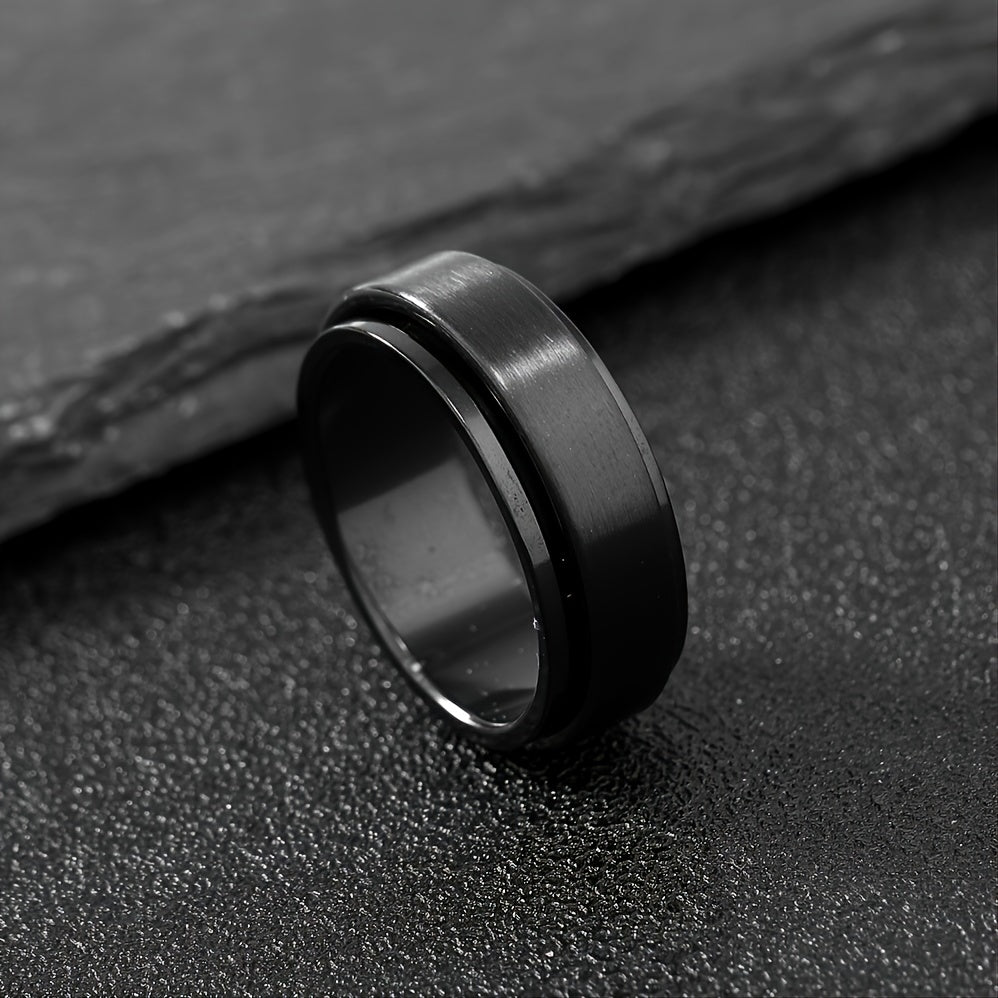 This matte stainless steel ring for men features a unique spinning design. Perfect for adding a stylish touch to any outfit.