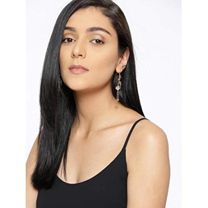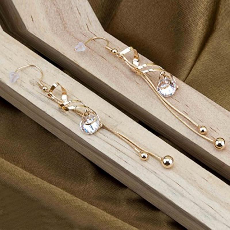Elegant and charming drop earrings featuring delicate spiral crystals and pearls on a stunning plated chain. Perfect for adding a touch of sophistication to any outfit.
