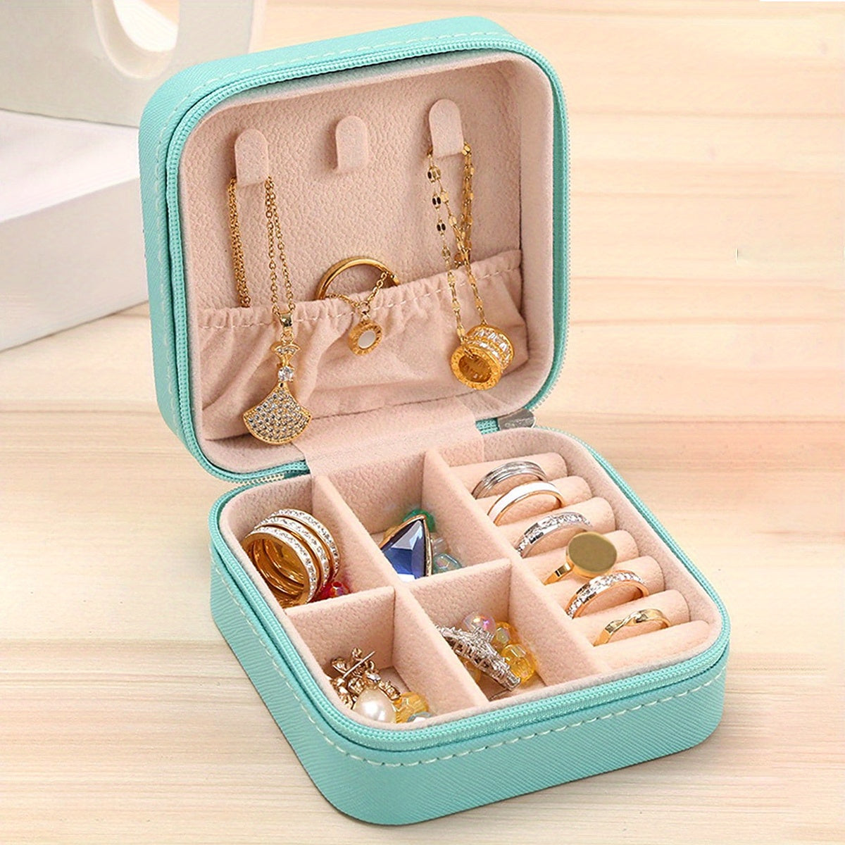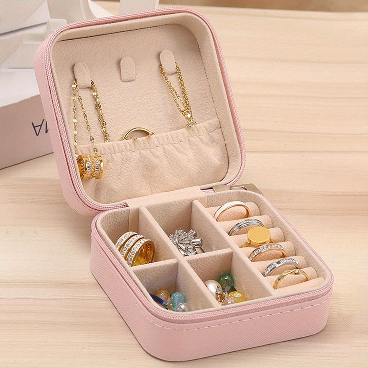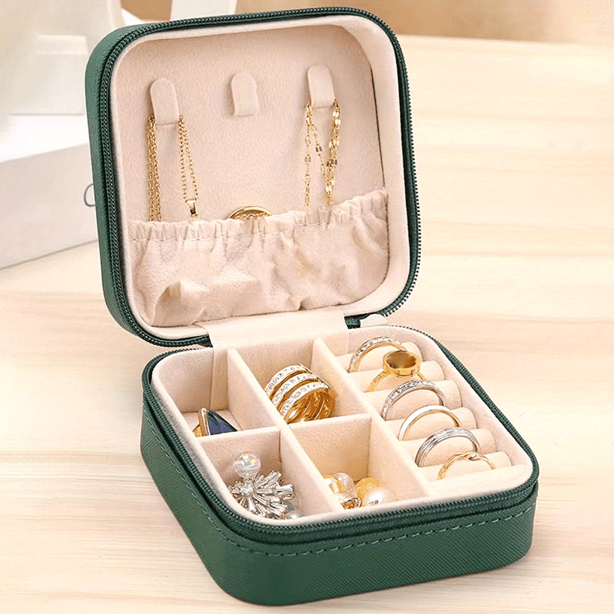 Keep your jewelry organized and secure with this square storage box. Perfect for storing earrings, rings, necklaces, and bracelets.