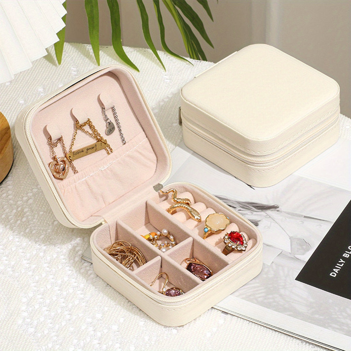 Keep your jewelry organized and secure while traveling with this portable storage box. Ideal for earrings, necklaces, bracelets, and rings.