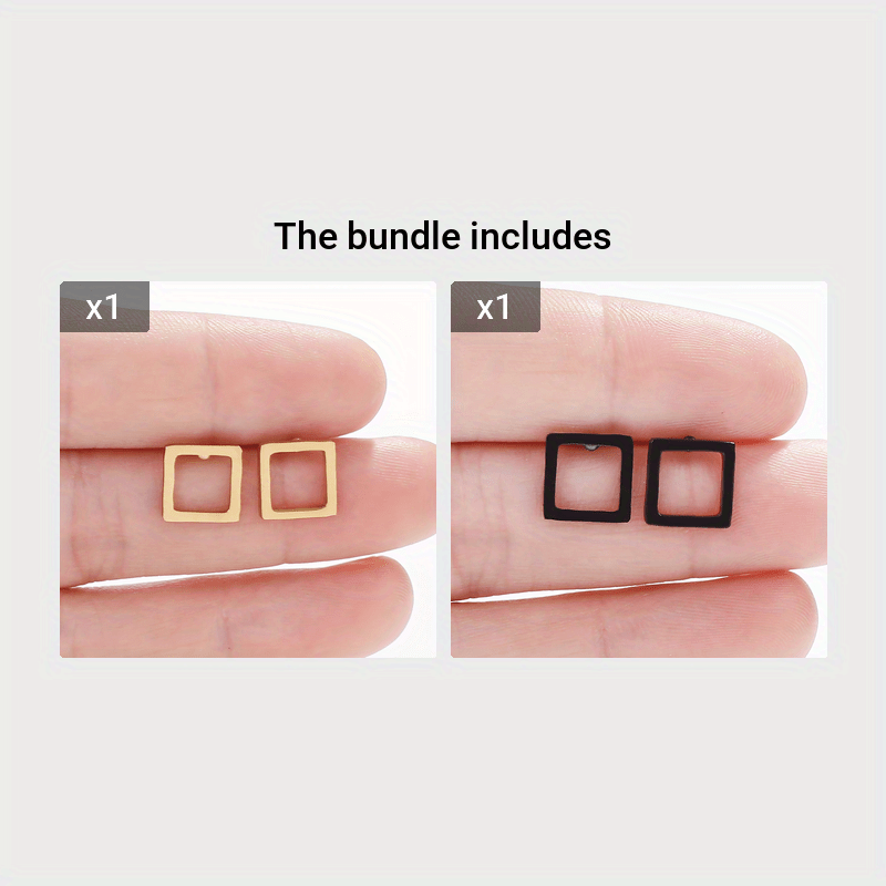 Elevate your style with this set of square stud earrings made from stainless steel. These hypoallergenic earrings are perfect for daily wear and can complement any outfit.