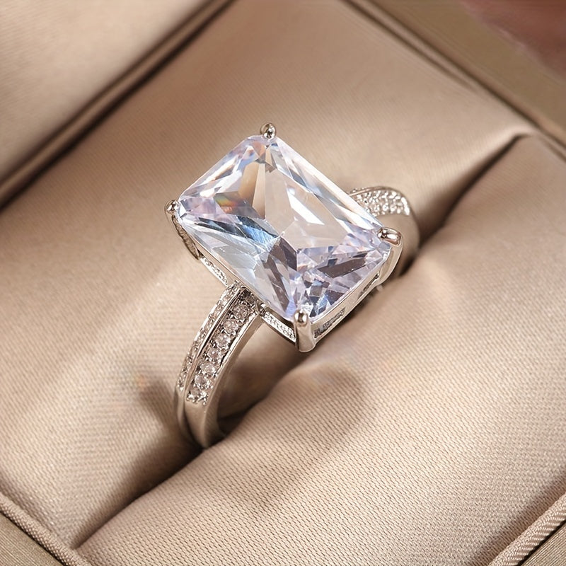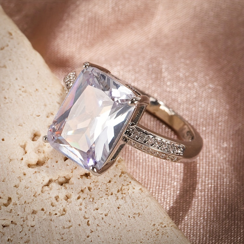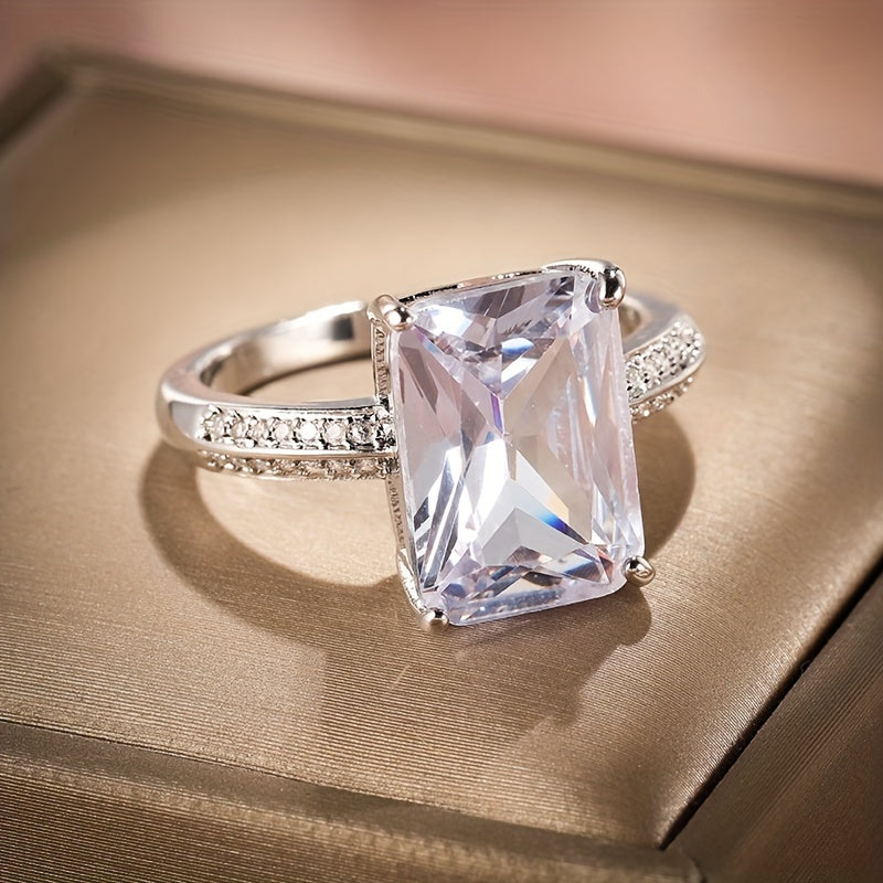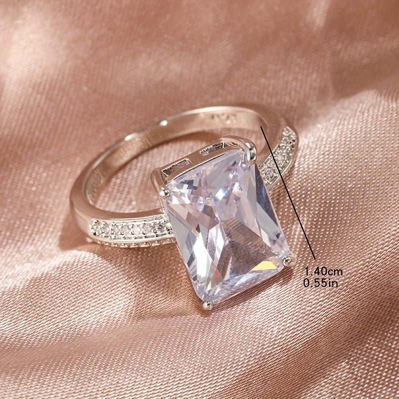 Make a statement with this dazzling silver plated ring featuring a large square zircon. Perfect for important occasions or as a dainty birthday or Christmas gift for her.