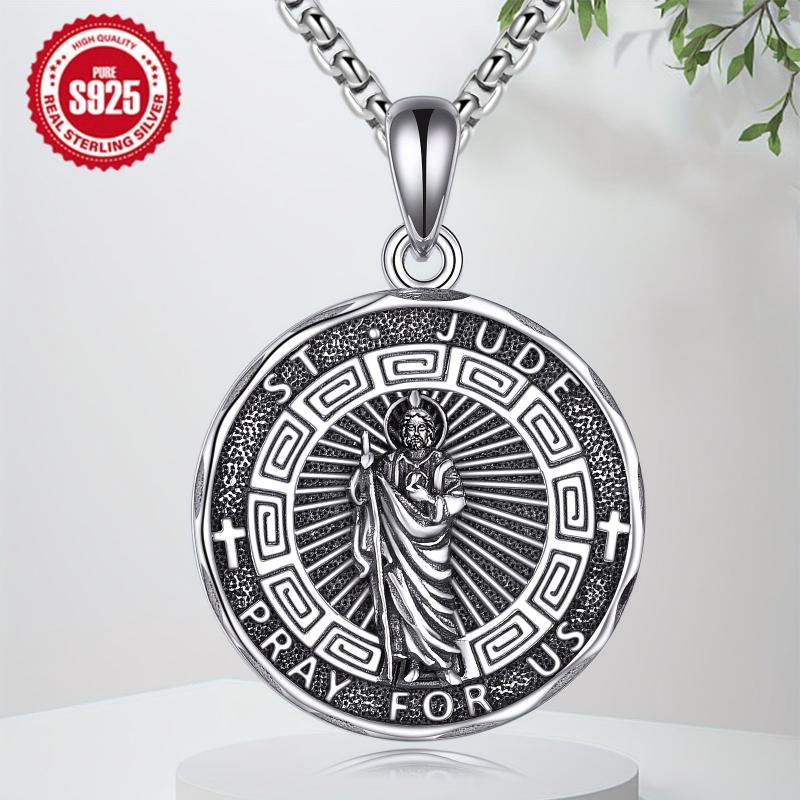 This Saint Jude necklace is a beautiful piece of religious jewellery suitable for both women and men. It is made of high-quality sterling silver featuring a detailed St Jude pendant, symbolizing protection.