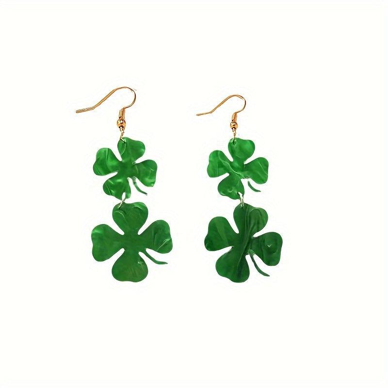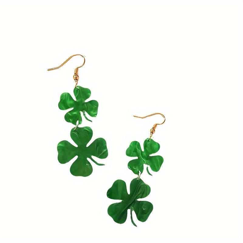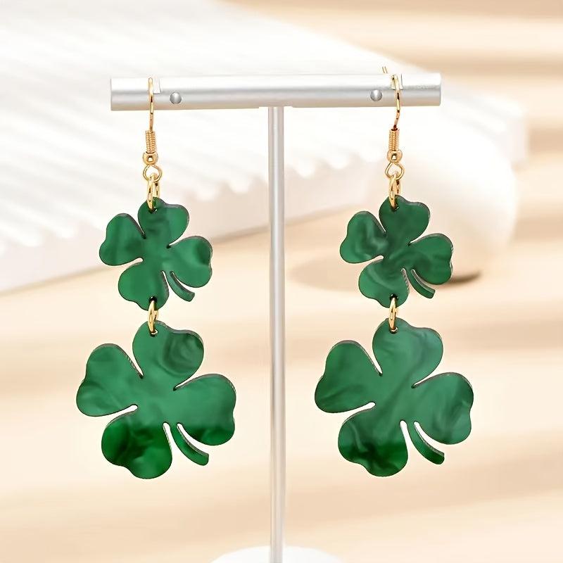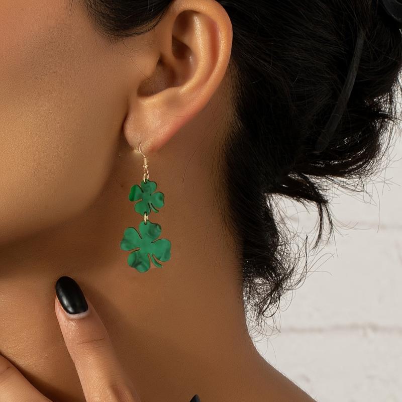 Add a touch of luck and style with these green clover dangle earrings, perfect for St Patrick's Day or vacation looks.