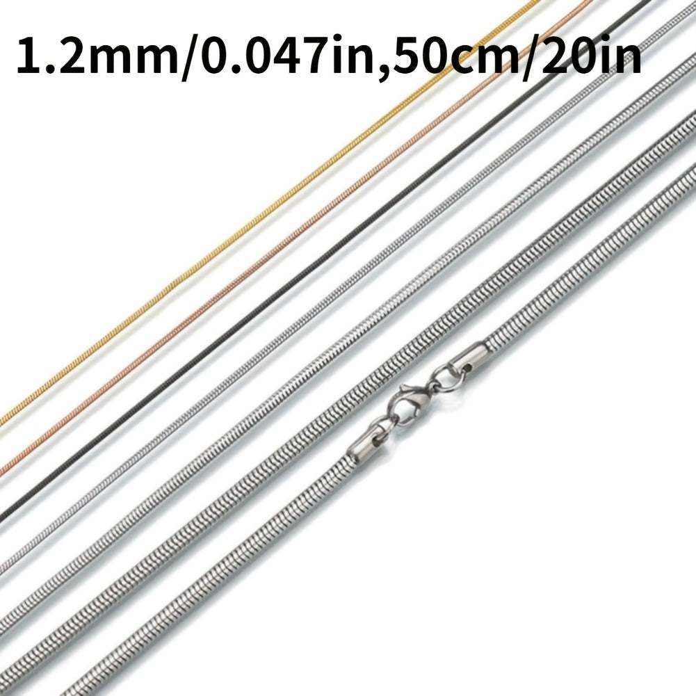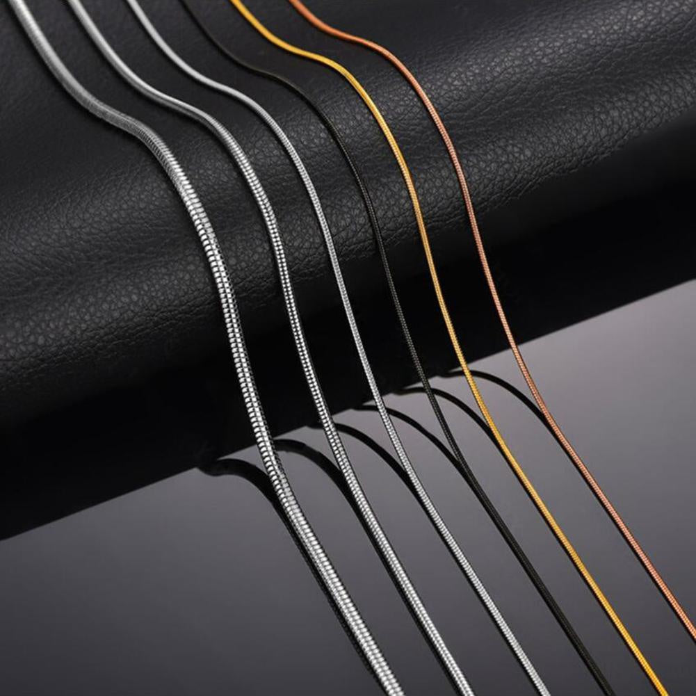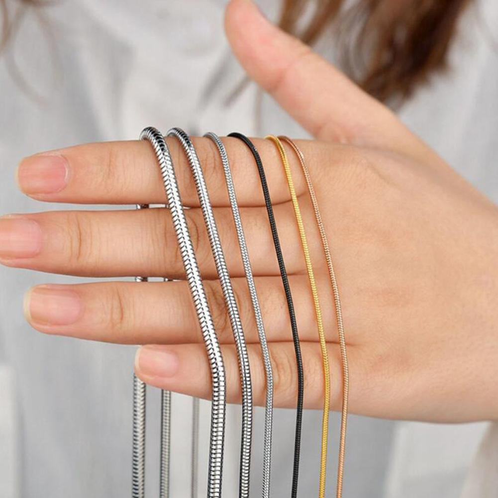 This stainless steel snake chain necklace is a perfect gift for both men and women. It has a width of 1.2mm, making it suitable for any pendant. Available in various lengths to suit your style.