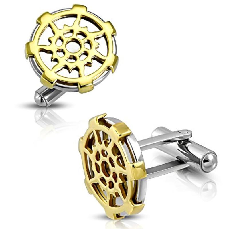 Elevate your style with these stainless steel 2-tone cufflinks. Perfect for formal occasions or business attire.