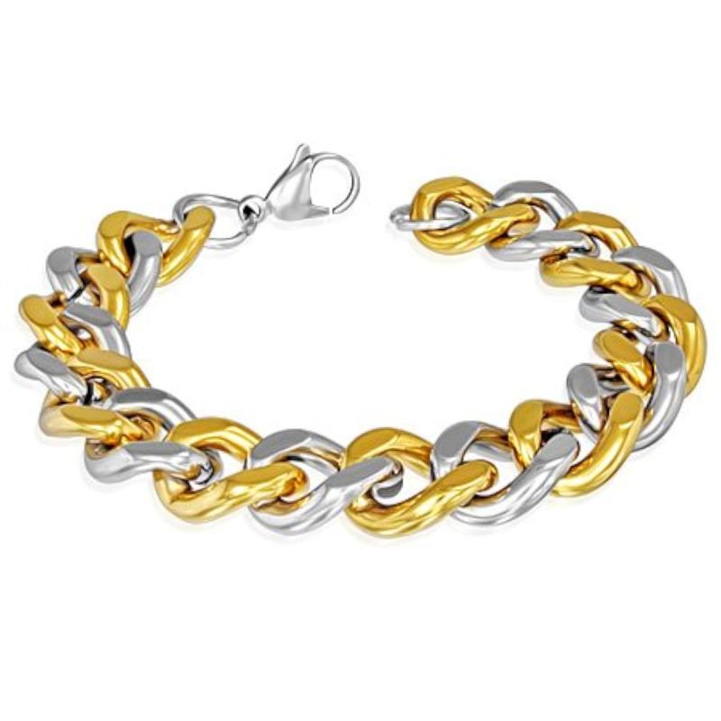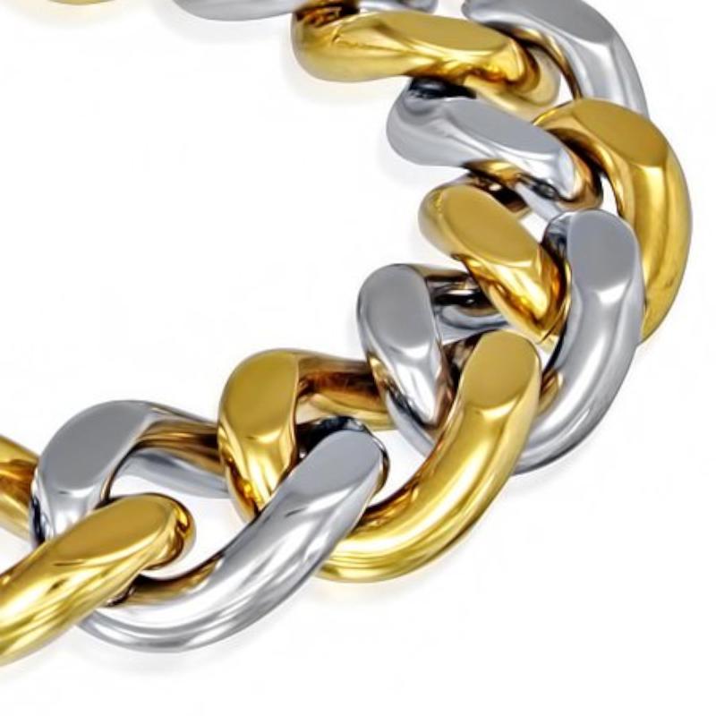 Elegant stainless steel bracelet with 2-tone link chain design for men and women.