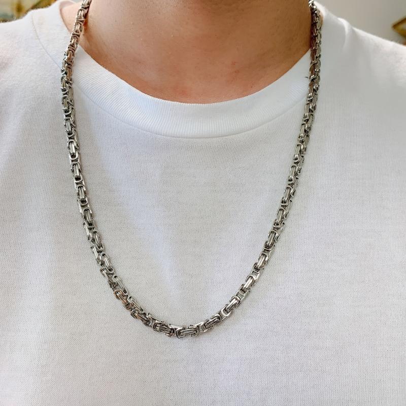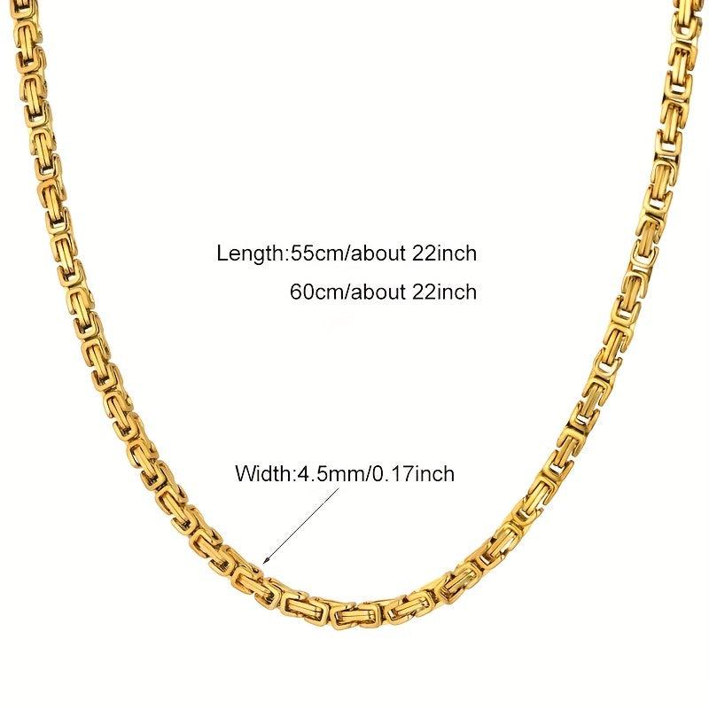 This men's necklace features a sleek and stylish design with a 4.5mm wide emperor chain, made of durable stainless steel. The necklace is long and does not have a pendant, making it a versatile accessory for any outfit.