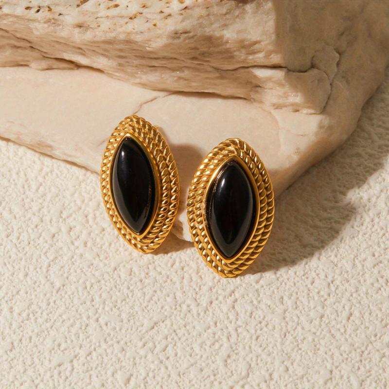 Embrace timeless elegance with these stainless steel stud earrings featuring vintage agate, perfect for daily wear or adding a touch of sophistication to your look.