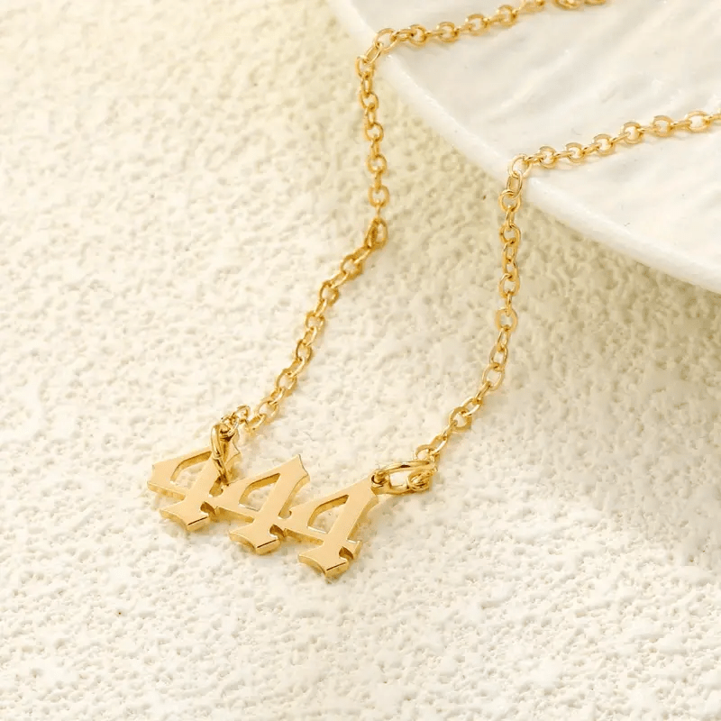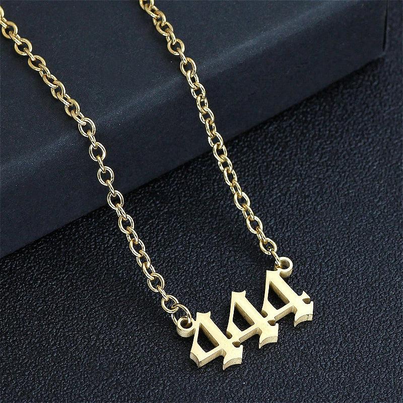 A versatile necklace featuring an angel number 444 pendant, suitable for daily wear.