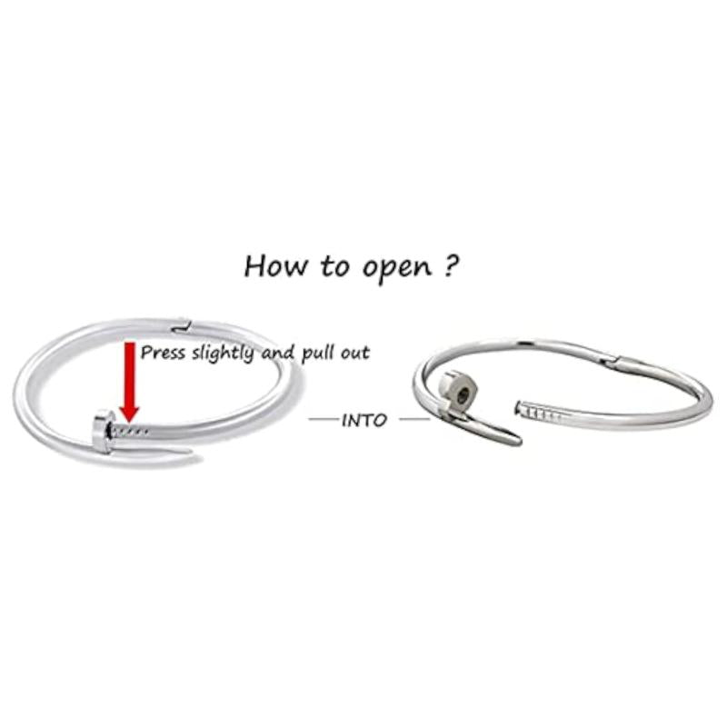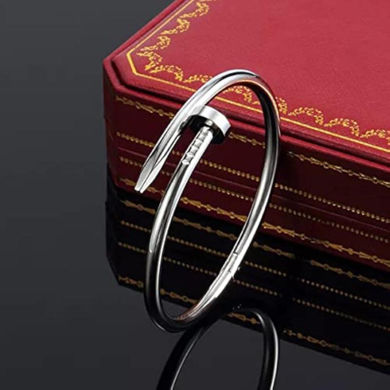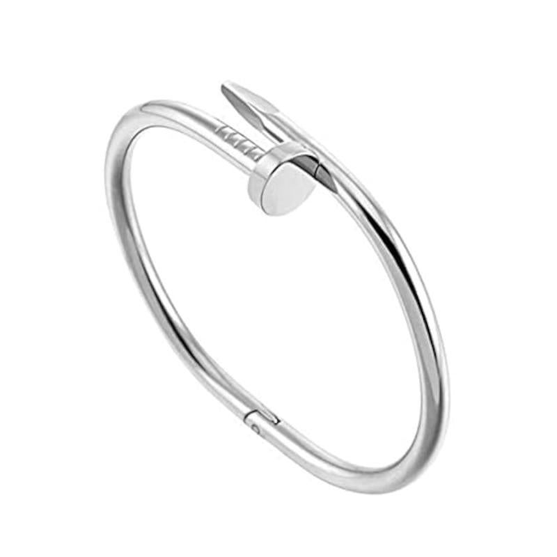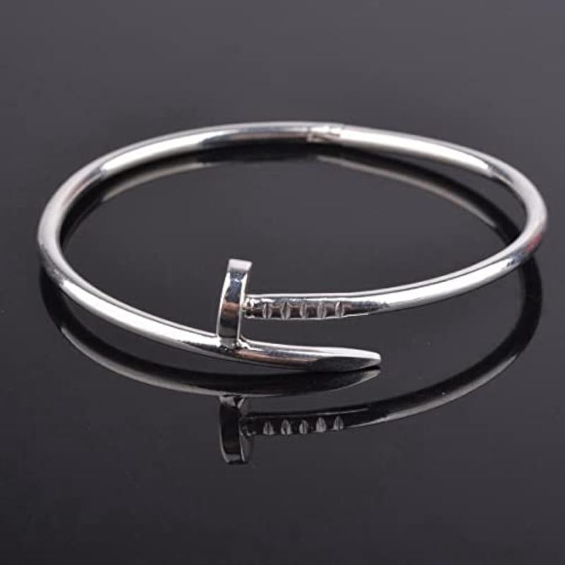 This plated stainless steel bracelet features a unique nail design that is both stylish and durable.