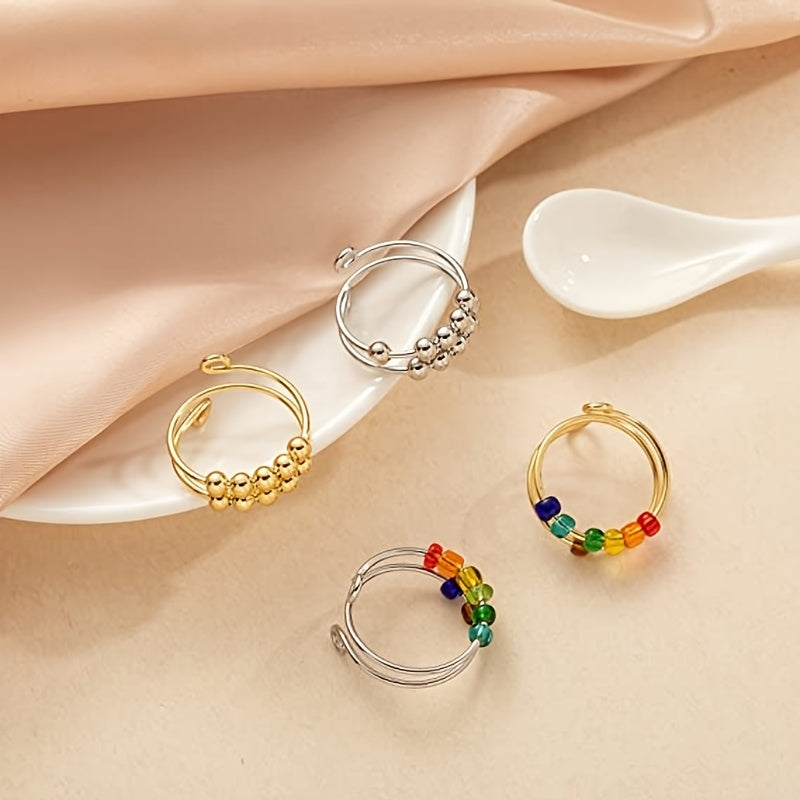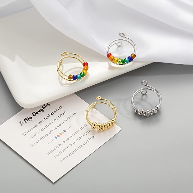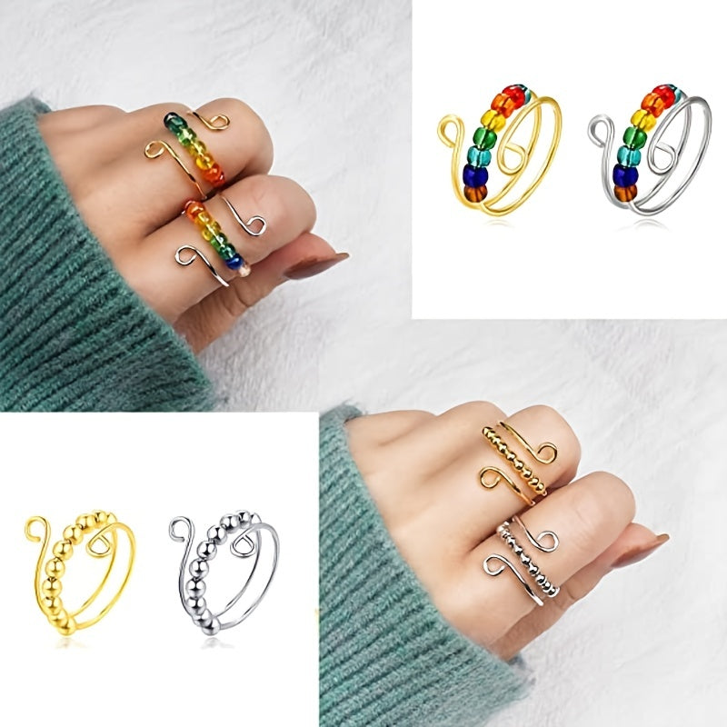 This stainless steel anxiety ring features spinning beads and comes in a variety of colors to match your daily outfits. It is adjustable and makes a perfect gift for friends and family.